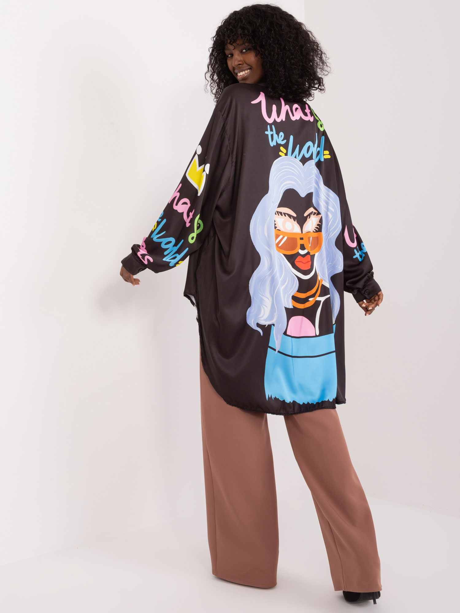 Modelka ma na sobie rozmiar S. Wymiary modelki: wzrost 173 cm, biust 82 cm, talia 62 cm, biodra 91 cm.