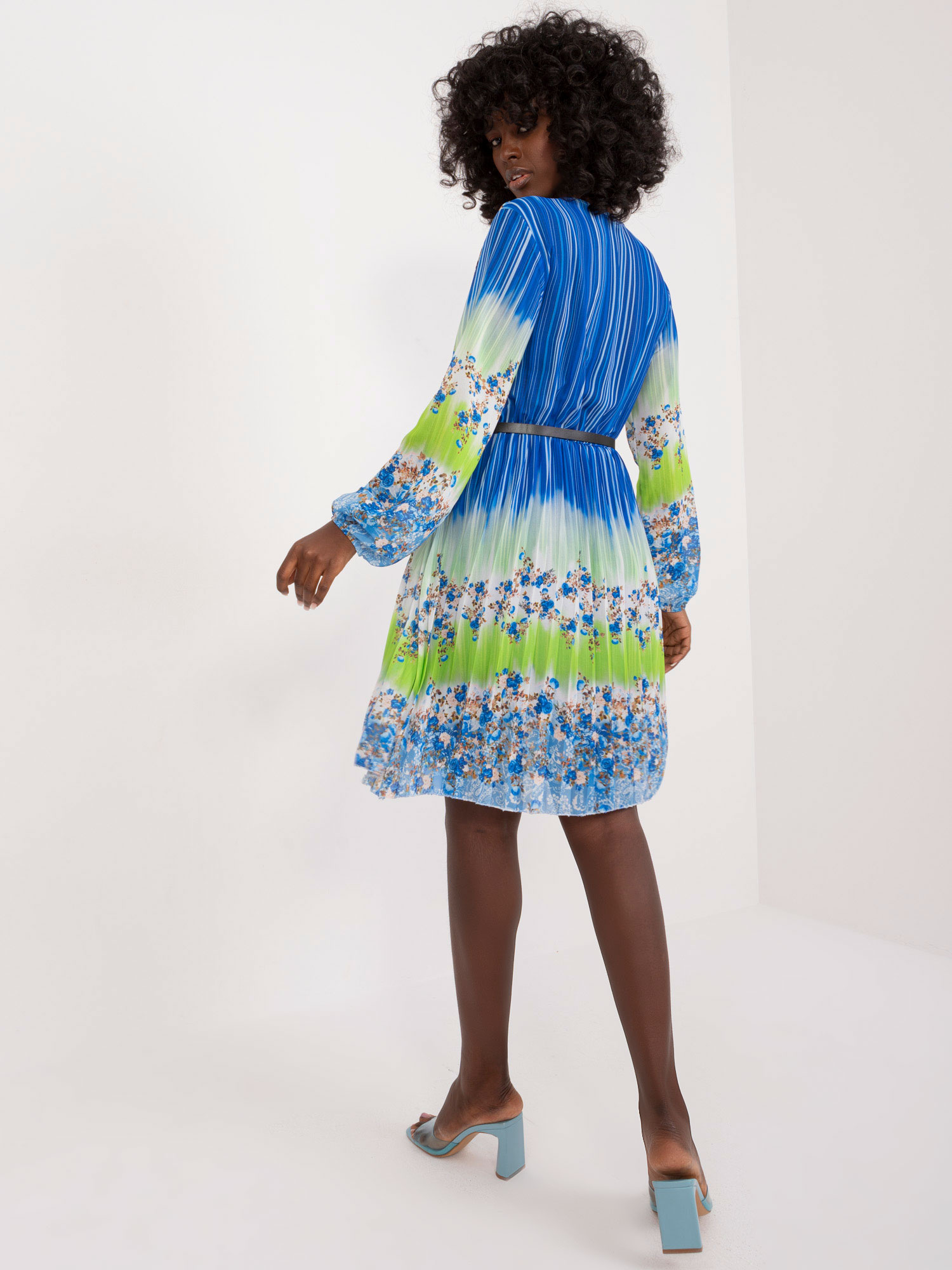 Modelka ma na sobie rozmiar one size. Wymiary modelki: wzrost 173 cm, biust 90 cm, talia 64 cm, biodra 92 cm.