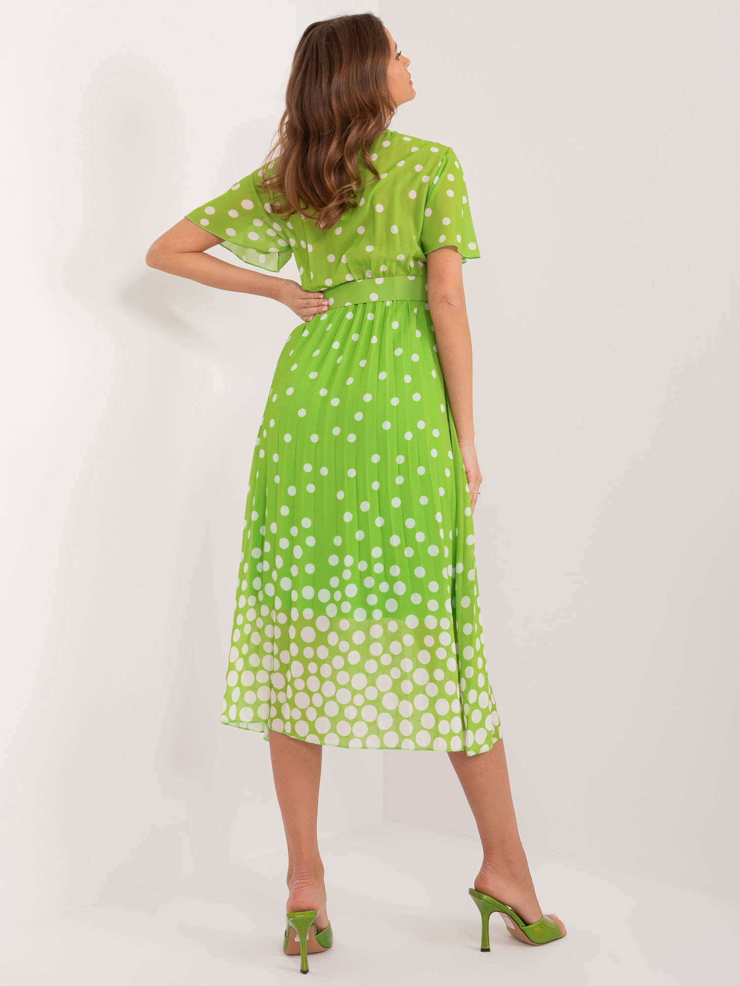 Ciemnozielona midi sukienka plisowana z paskiem .