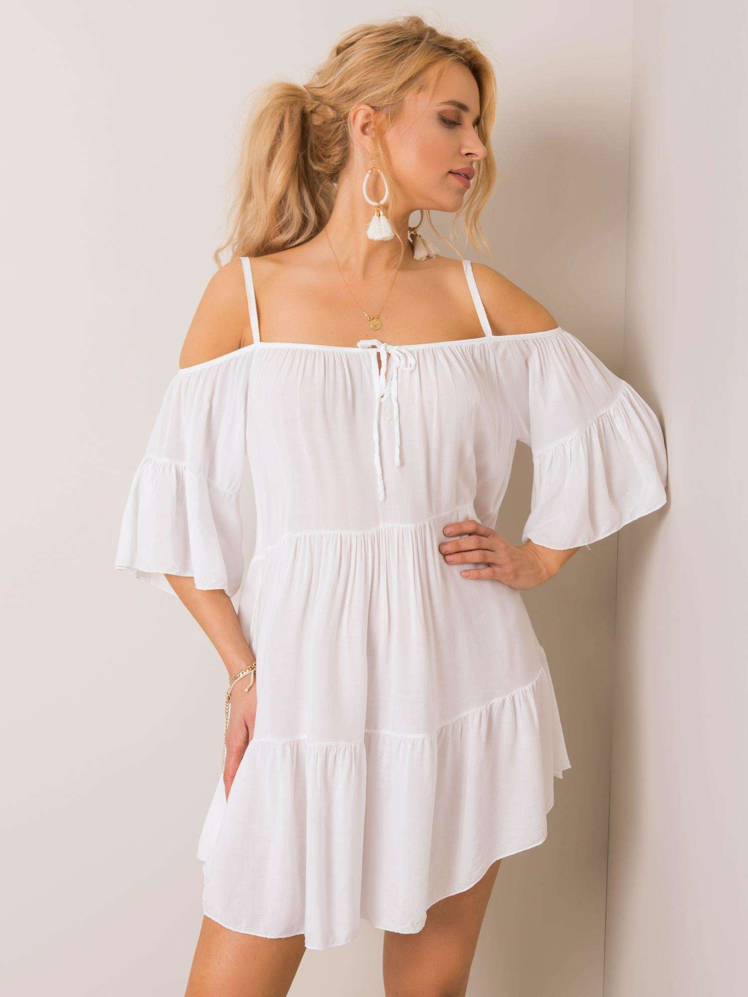Modelka ma na sobie rozmiar one size. Wymiary modelki: wzrost 175 cm, biust 90 cm, talia 66 cm, biodra 94 cm.