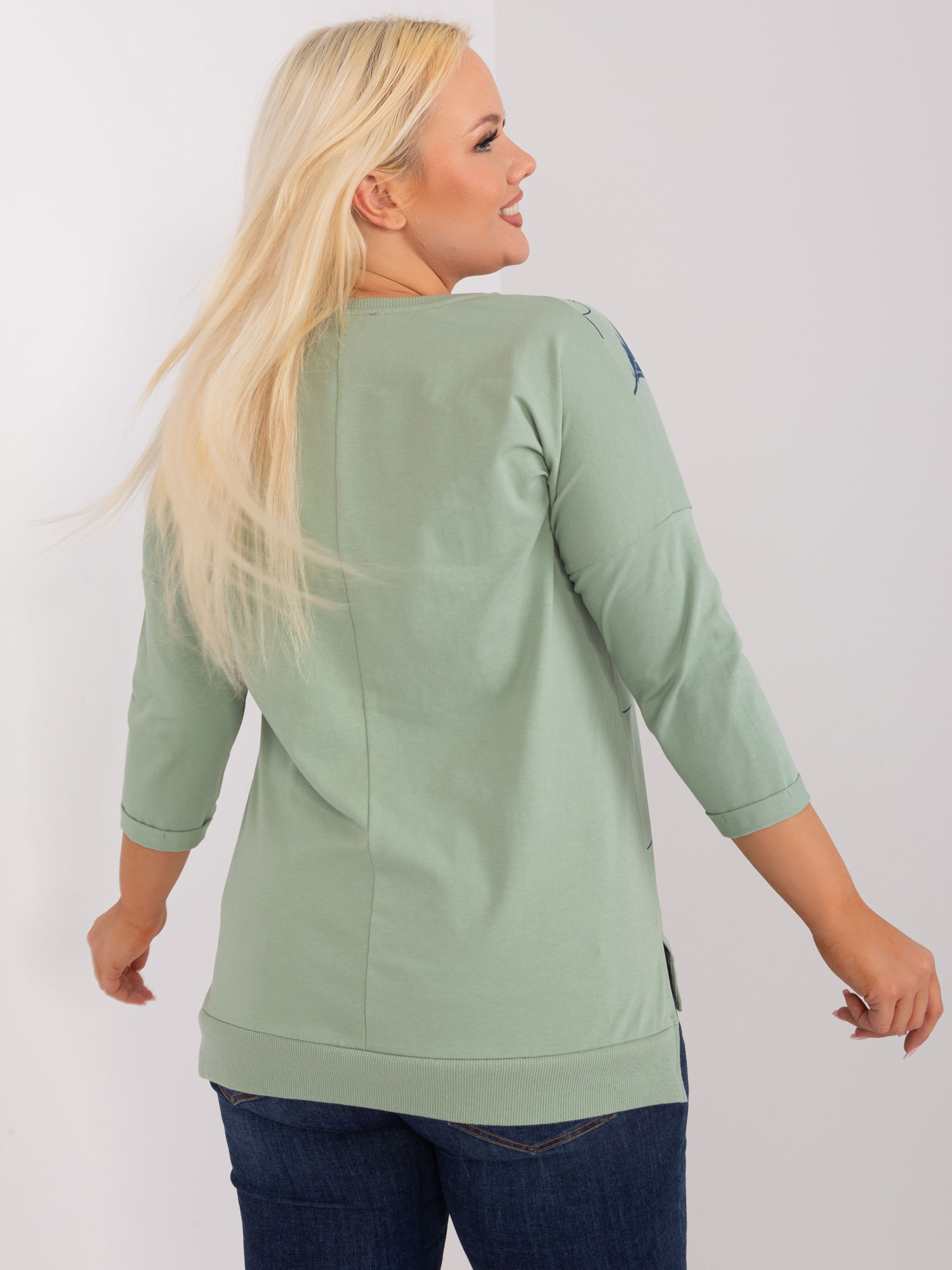 Jasnozielona bluzka plus size z okrągłym dekoltem.