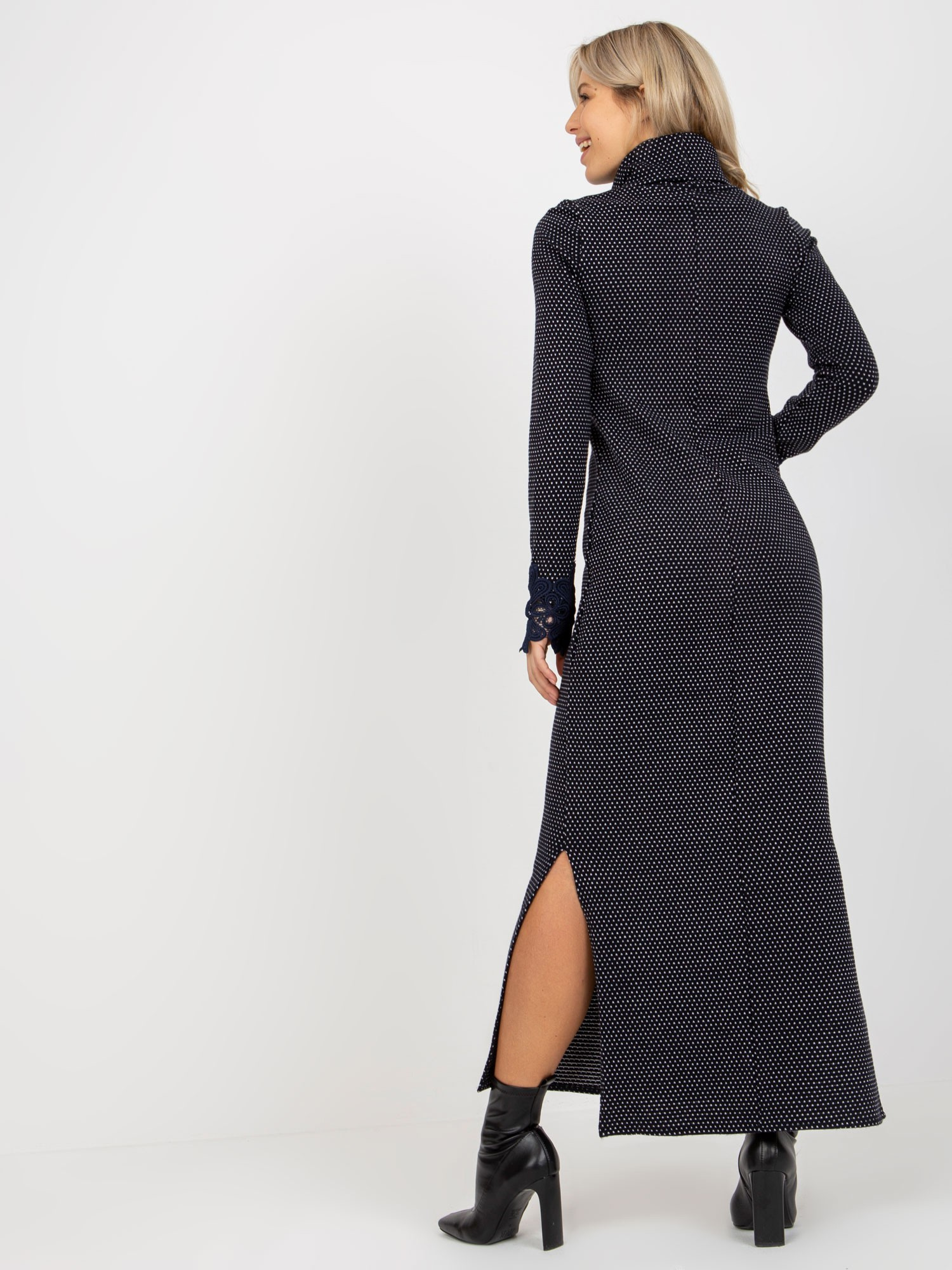 Modelka ma na sobie rozmiar S/M. Wymiary modelki: wzrost 173 cm, biust 90 cm, talia 64 cm, biodra 91 cm.