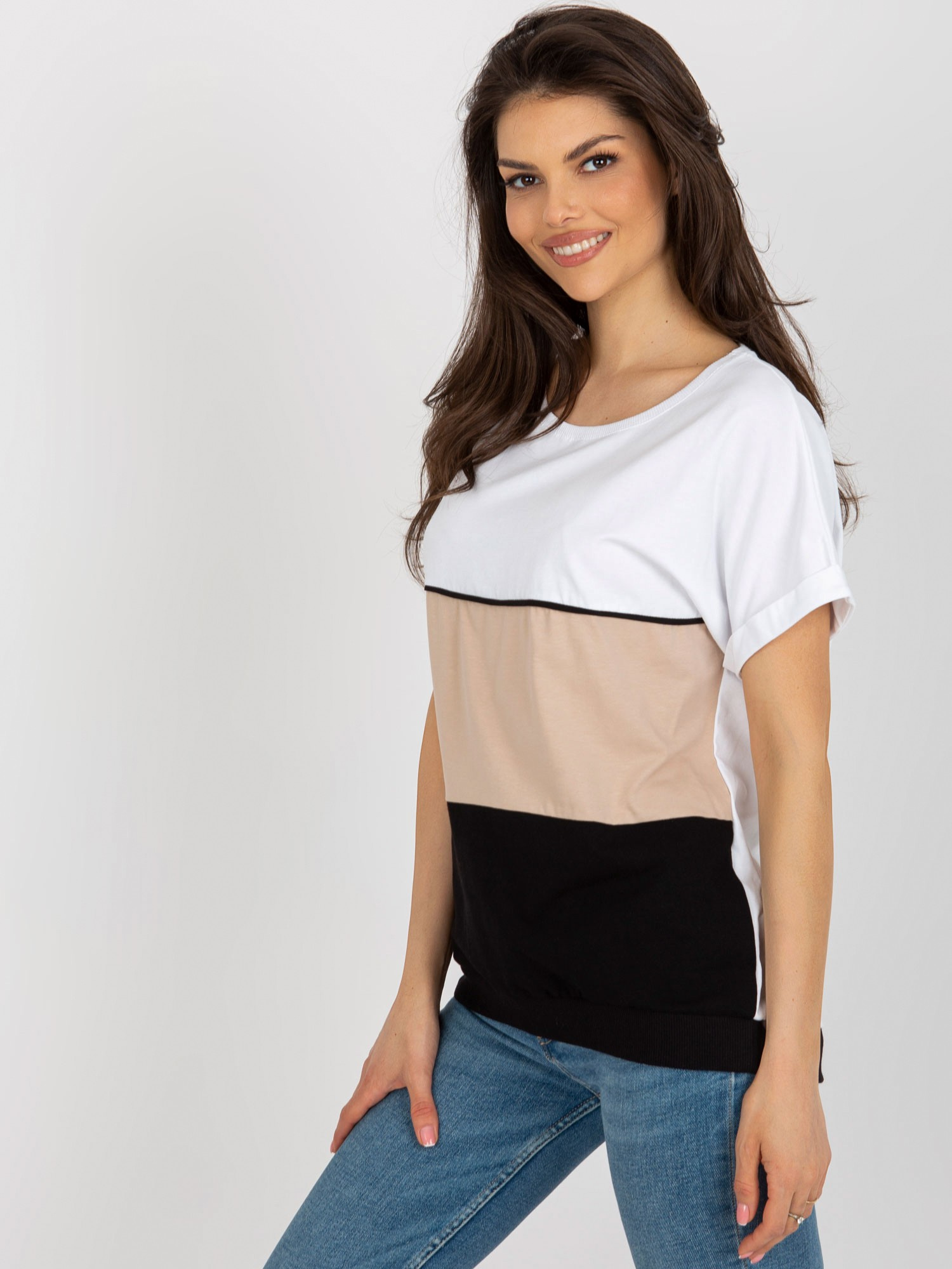 • Modelka: Modelka ma na sobie rozmiar one size. Wymiary modelki: wzrost 176 cm, biust 85 cm, talia 64 cm, biodra 92 cm