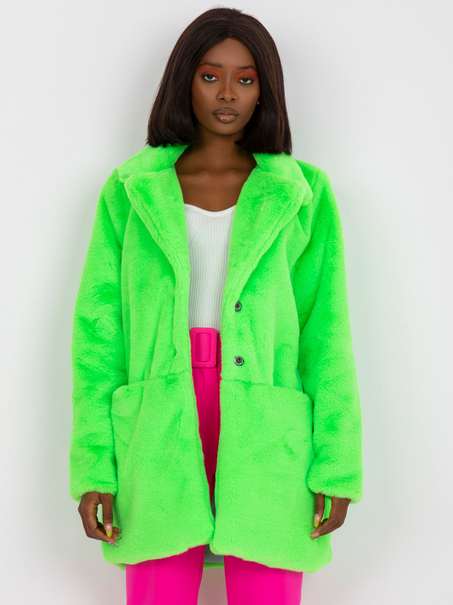 - Modelka: Modelka ma na sobie rozmiar one size. Wymiary modelki: wzrost 173 cm, biust 85 cm, talia 62 cm, biodra 95 cm