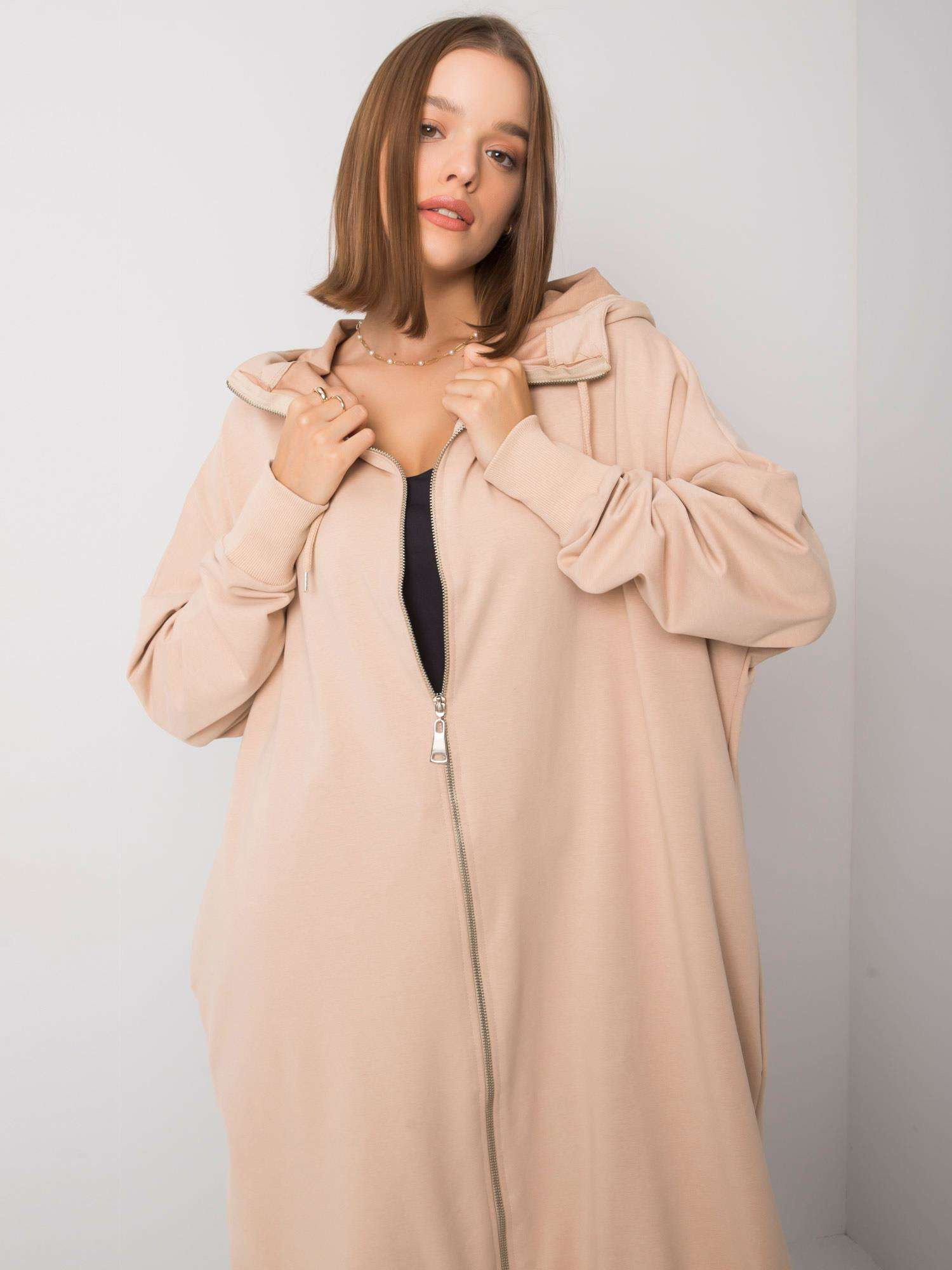 Beżowa długa bluza na suwak.