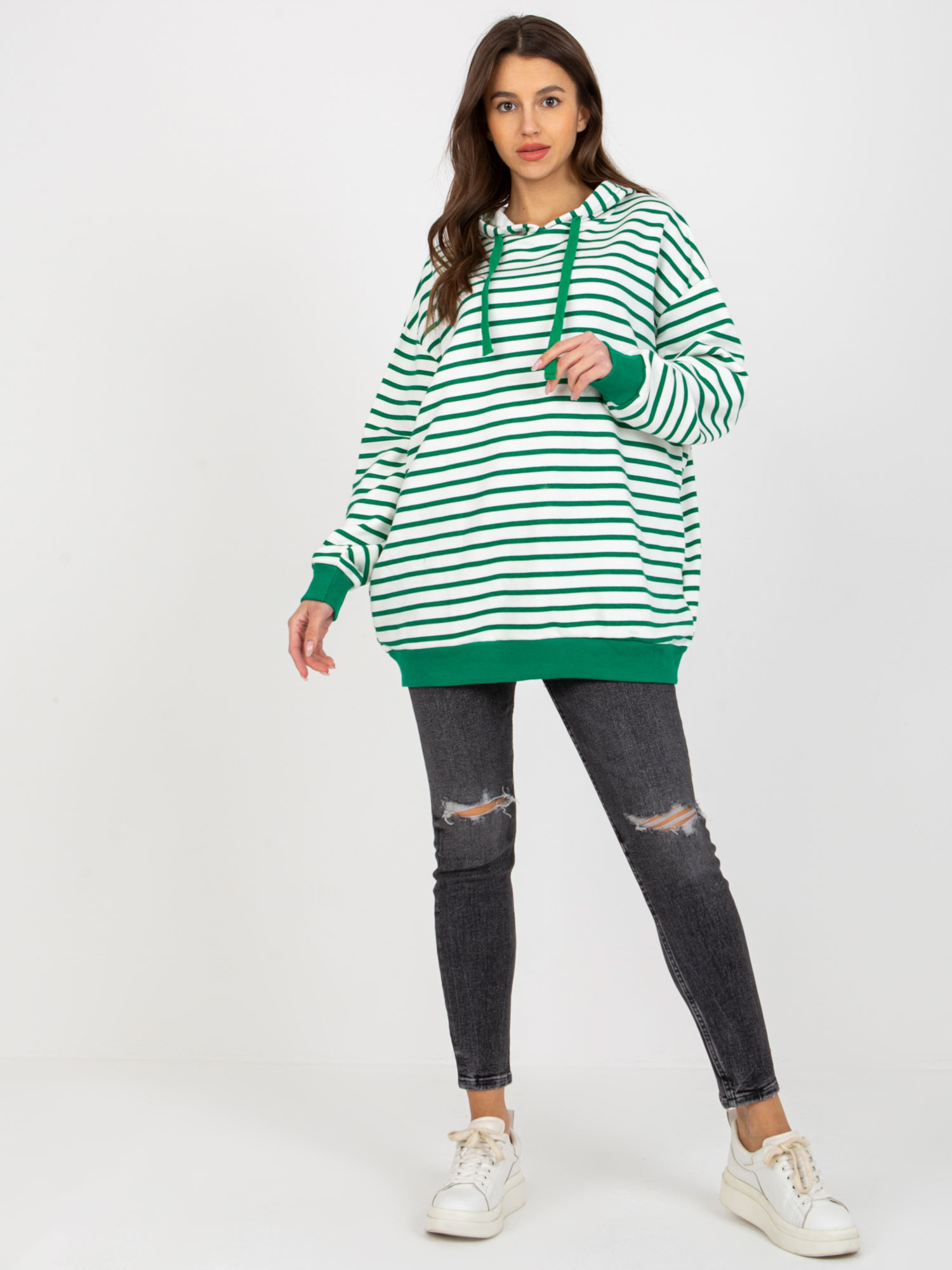 Wymiary bluzy w rozmiarze one size mierzone na płasko: szerokość pod pachami – 64 cm, długość całkowita – 74 cm, długość rękawa – 64 cm.