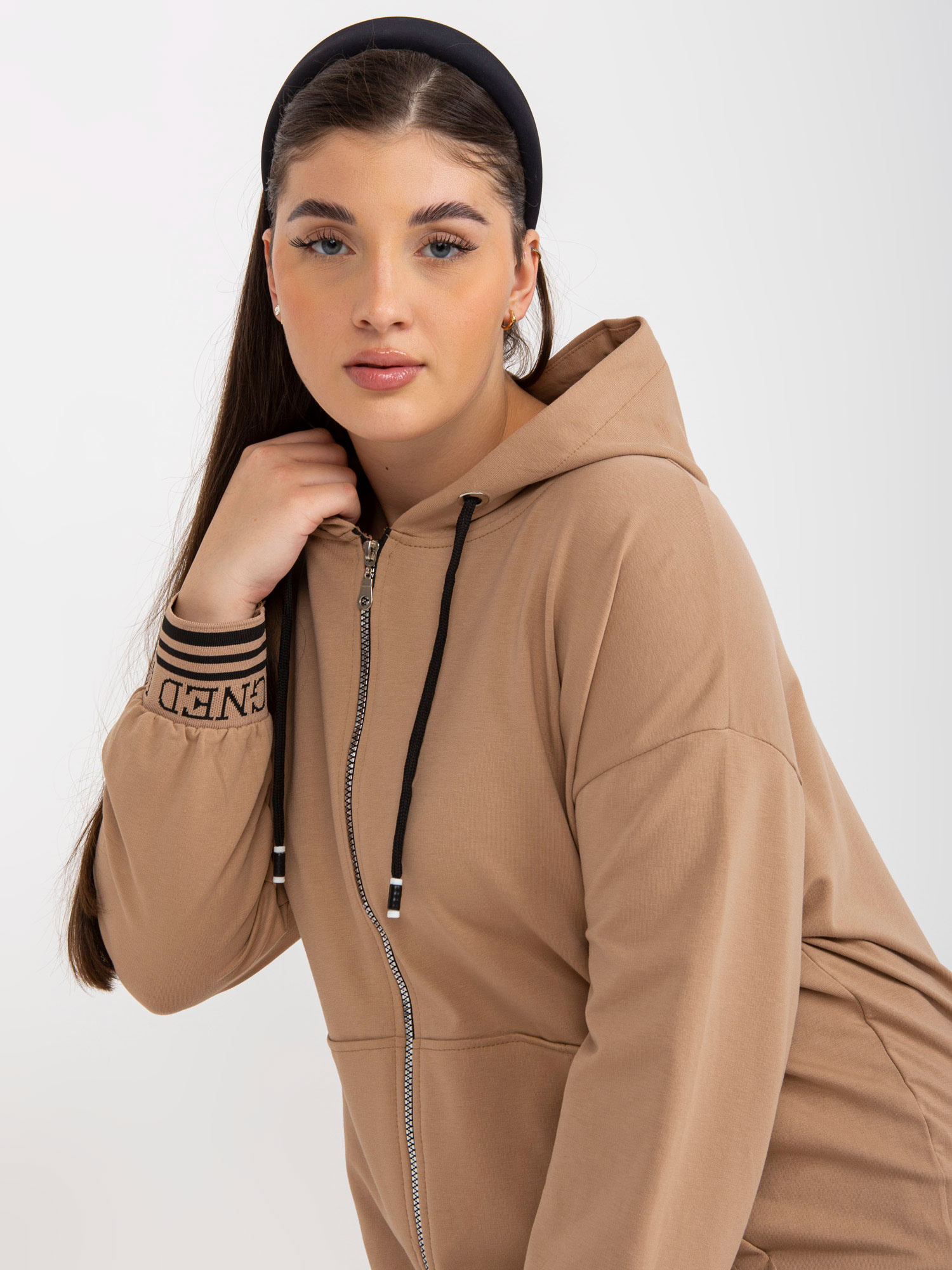 Beżowa damska bluza basic bez kaptura RUE PARIS .