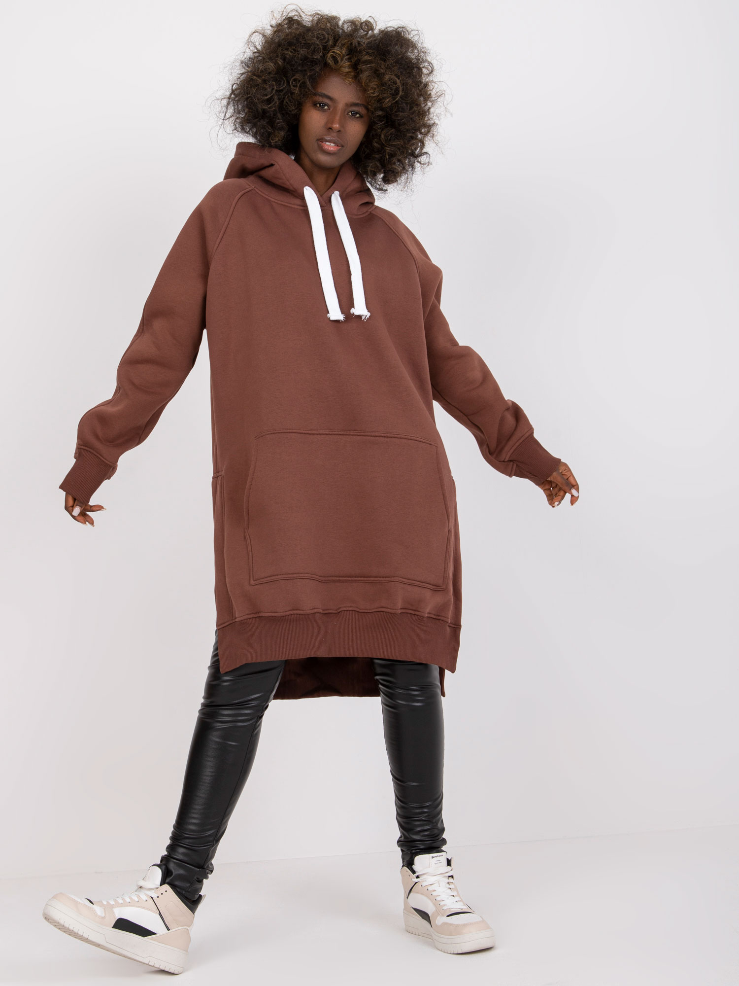 Wymiary bluzy w rozmiarze one size mierzone na płasko: szerokość pod pachami – 63 cm, długość całkowita (przód) – 88 cm, długość całkowita (tył) – 94 cm, długość rękawa – 61 cm.