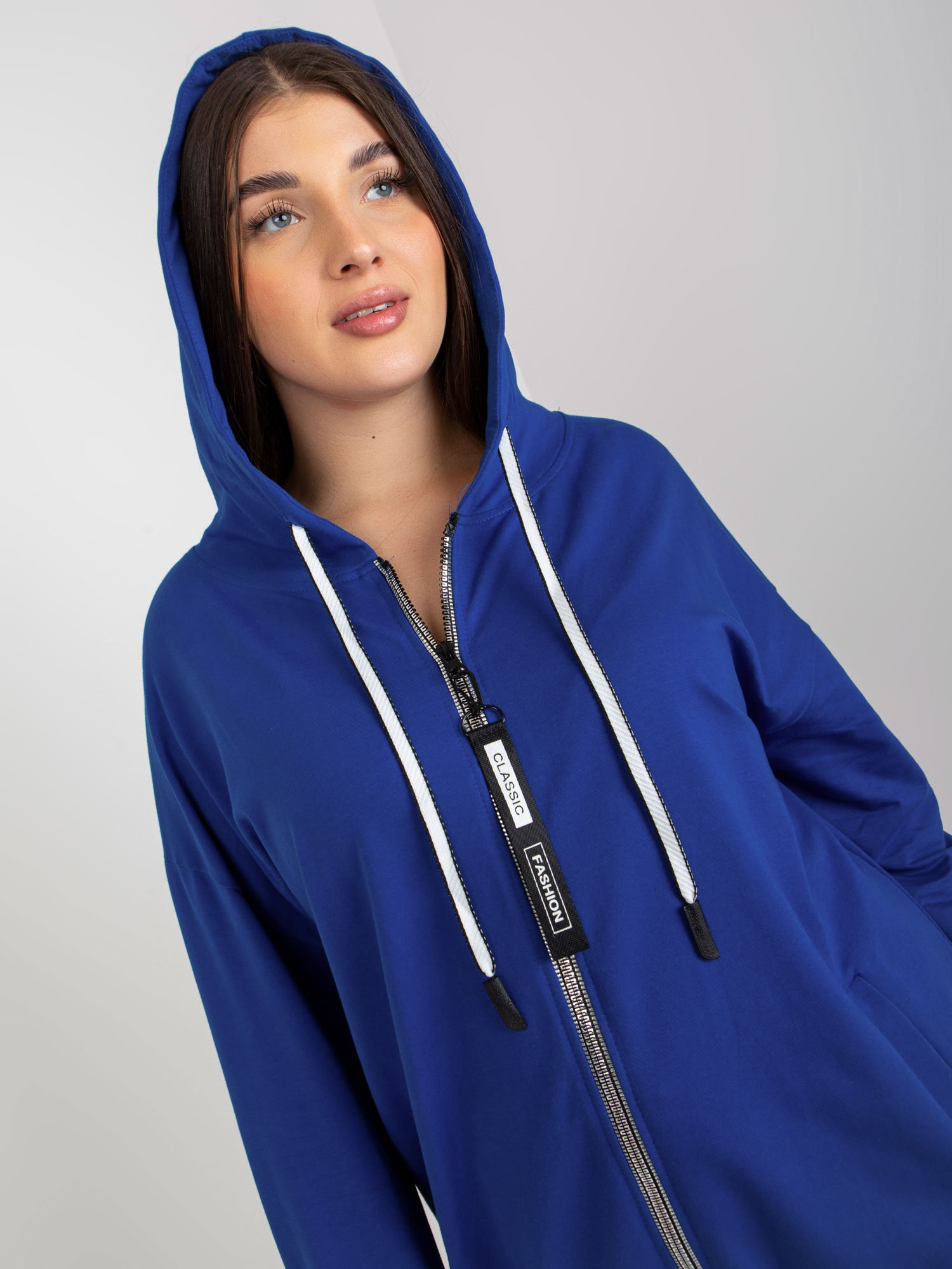 Ciemnoniebieska rozpinana bluza plus size z napisami .