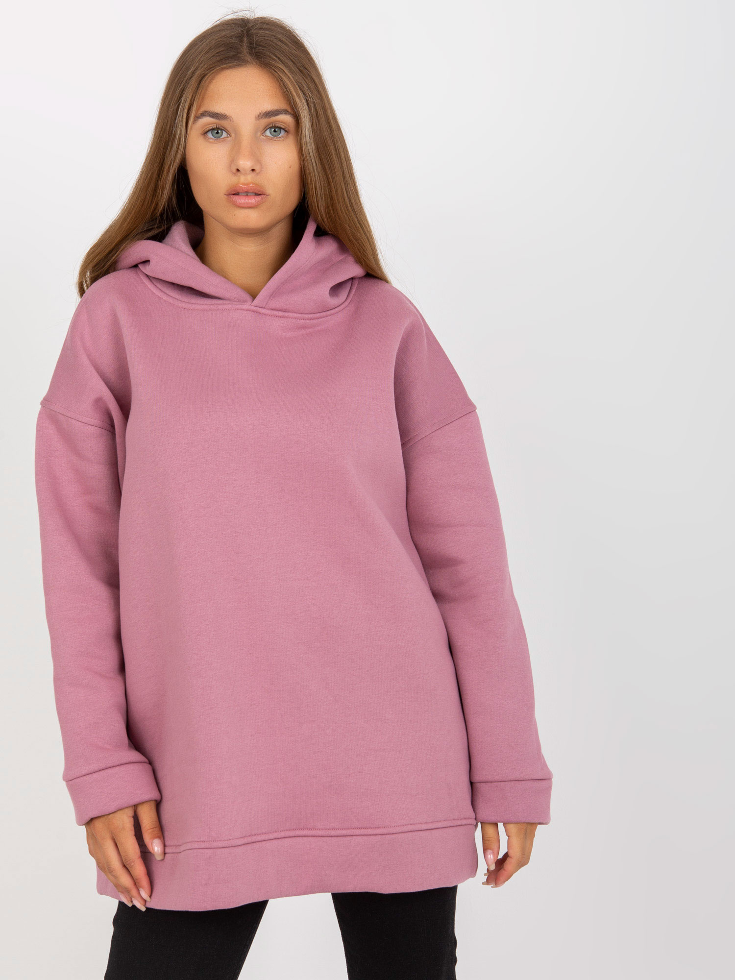 Brudnoróżowa dresowa bluza basic z kapturem .