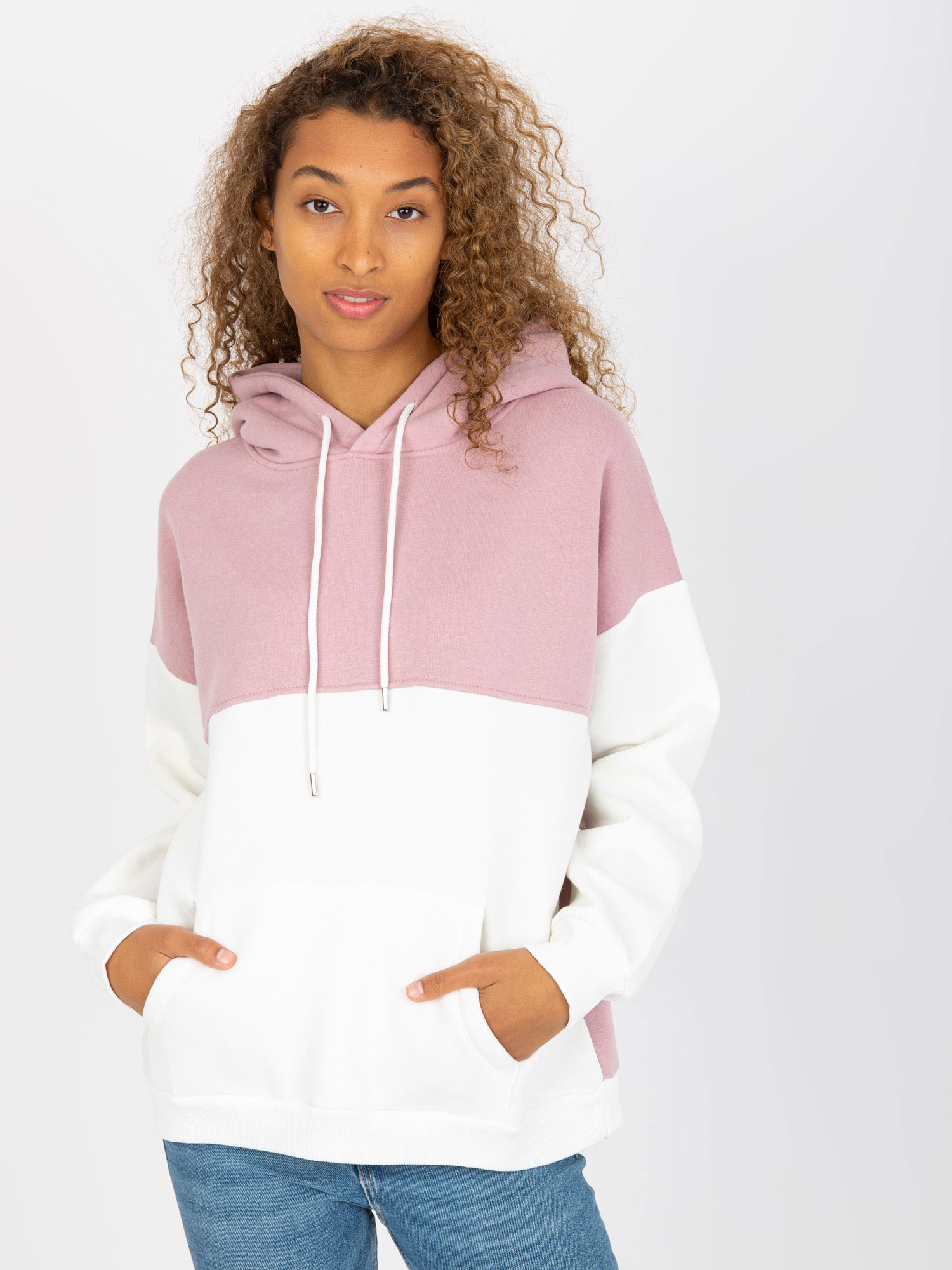 Różowo-ecru dresowa bluza basic kangurka RUE PARIS .