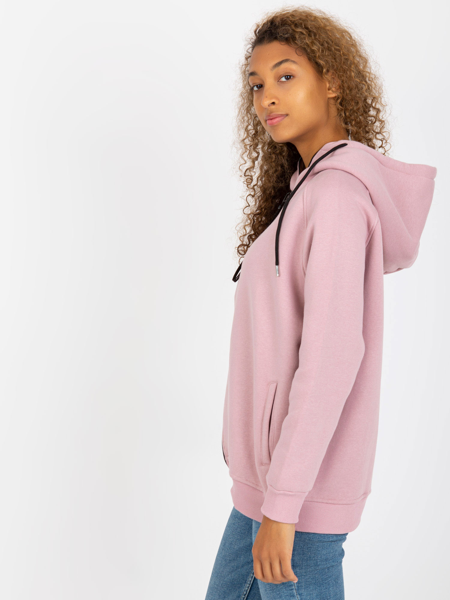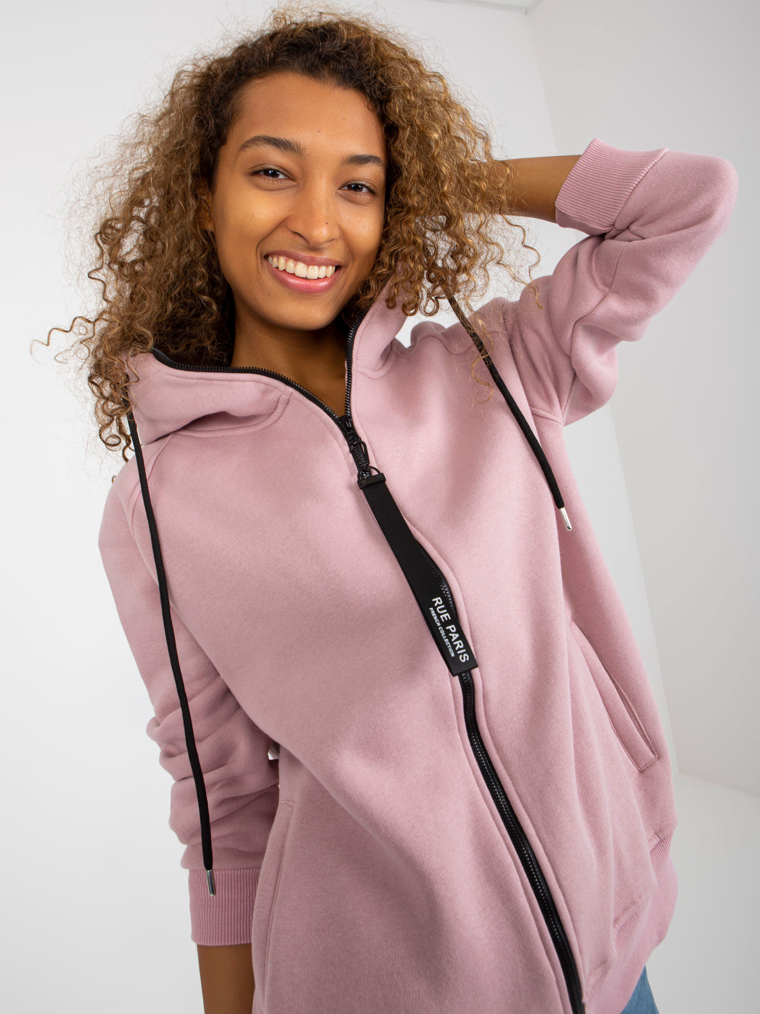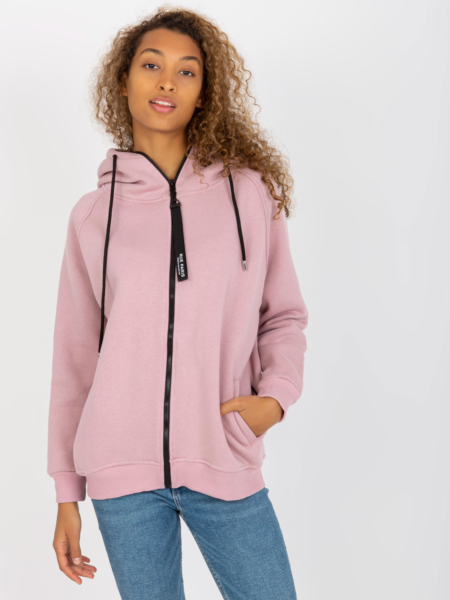 Brudnoróżowa rozpinana bluza basic z kieszeniami RUE PARIS .