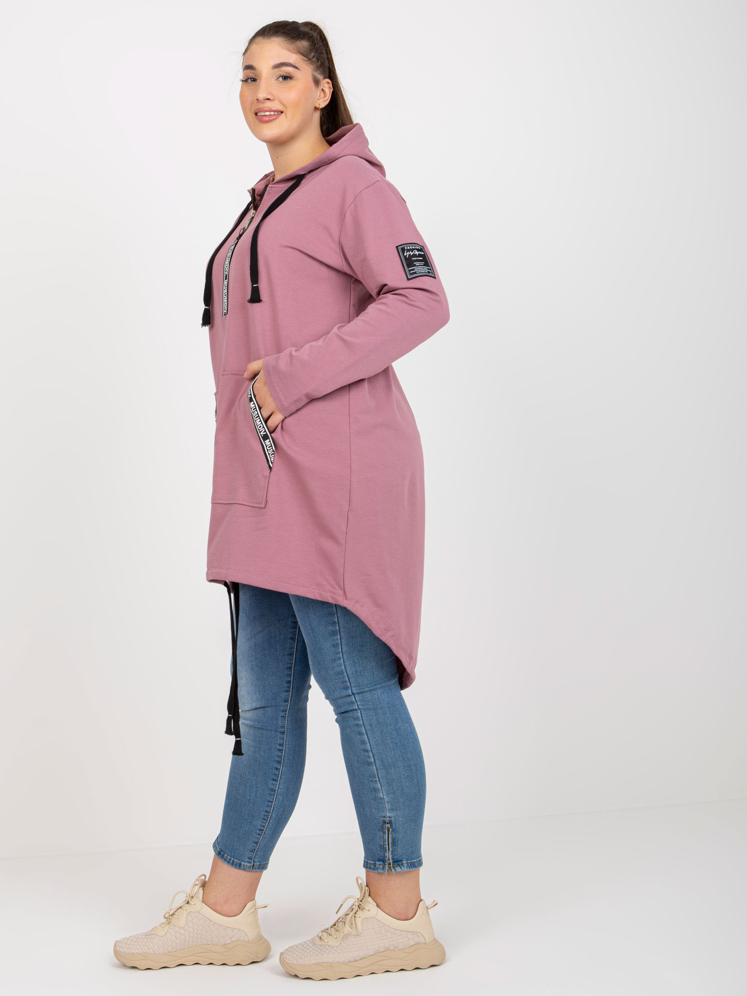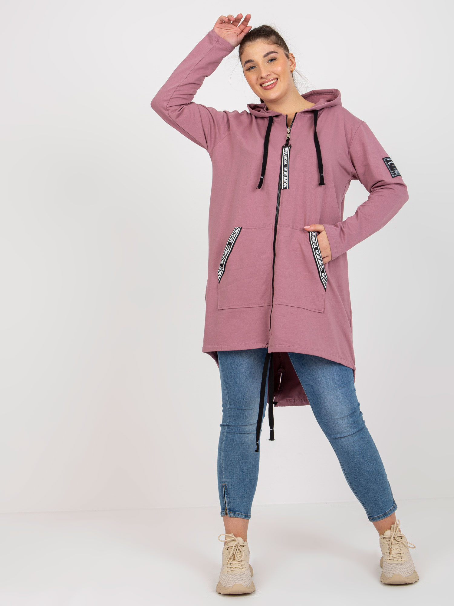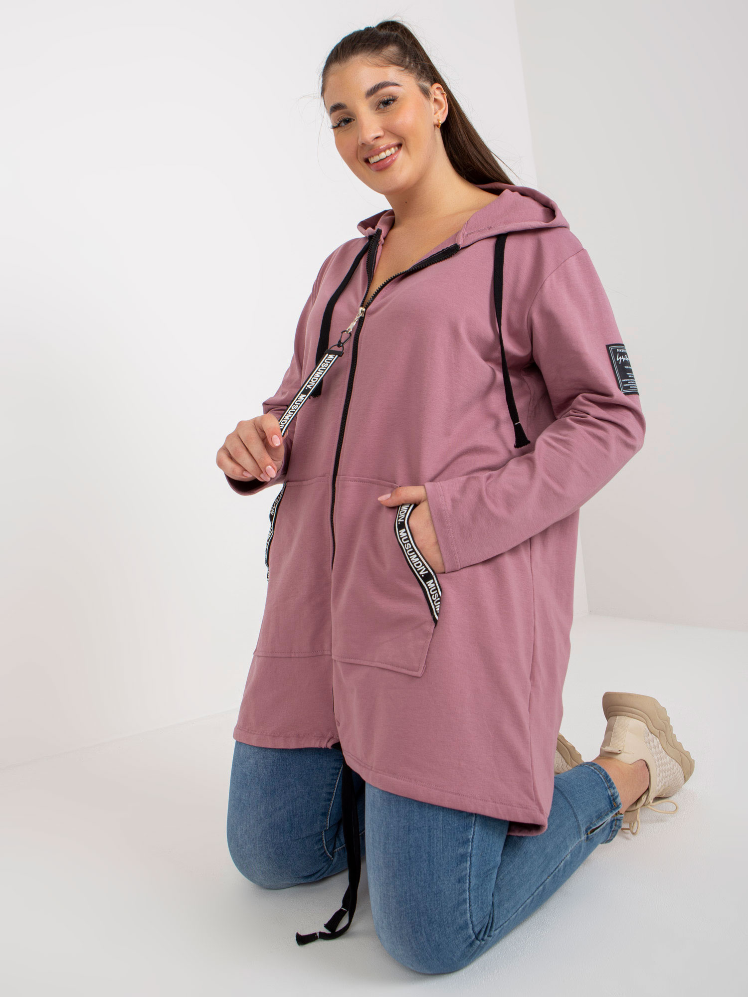 Brudnoróżowa długa rozpinana bluza plus size z bawełny .