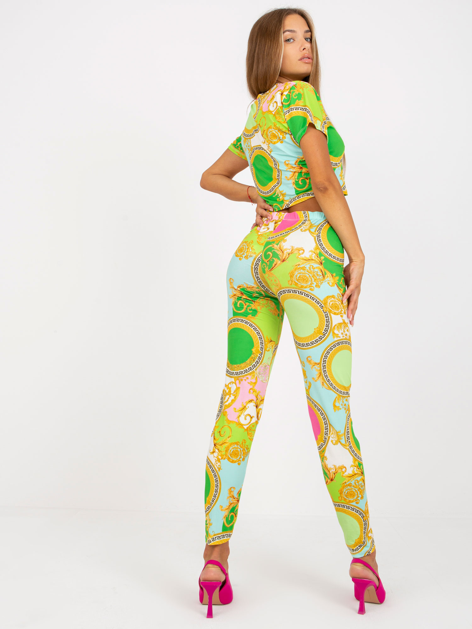 Modelka ma na sobie rozmiar S/M. Wymiary modelki: wzrost 175 cm, biust 85 cm, talia 63 cm, biodra 95 cm.