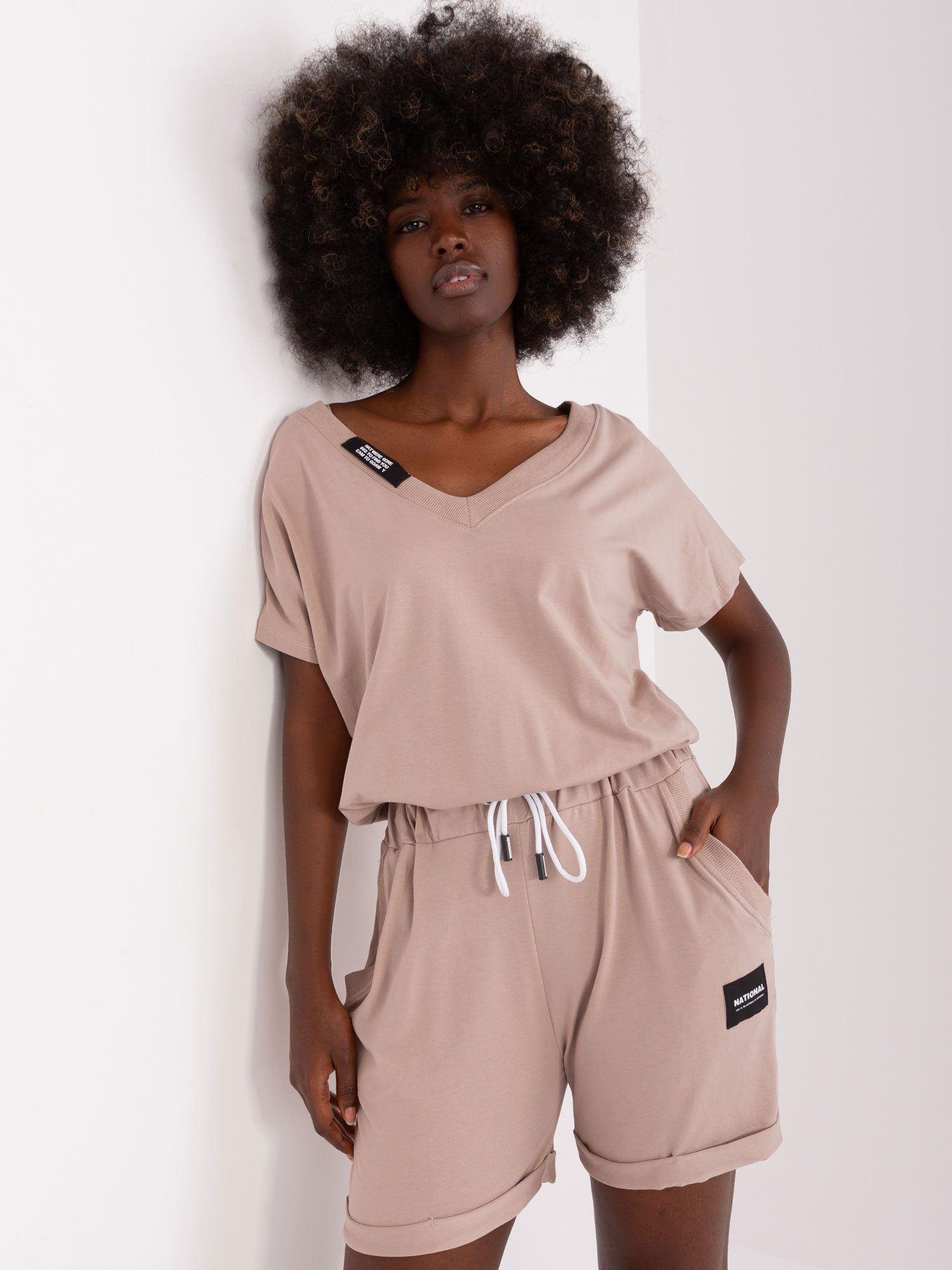 Modelka ma na sobie rozmiar one size. Wymiary modelki: wzrost 164 cm, biust 86 cm, talia 67 cm, biodra 99 cm.