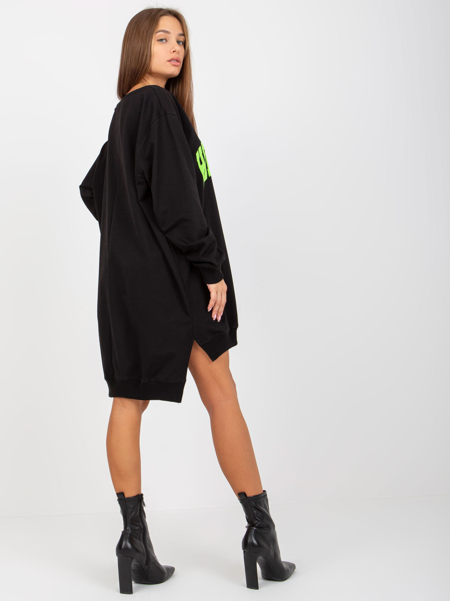Czarno-zielona długa bluza z napisem i okrągłym dekoltem .