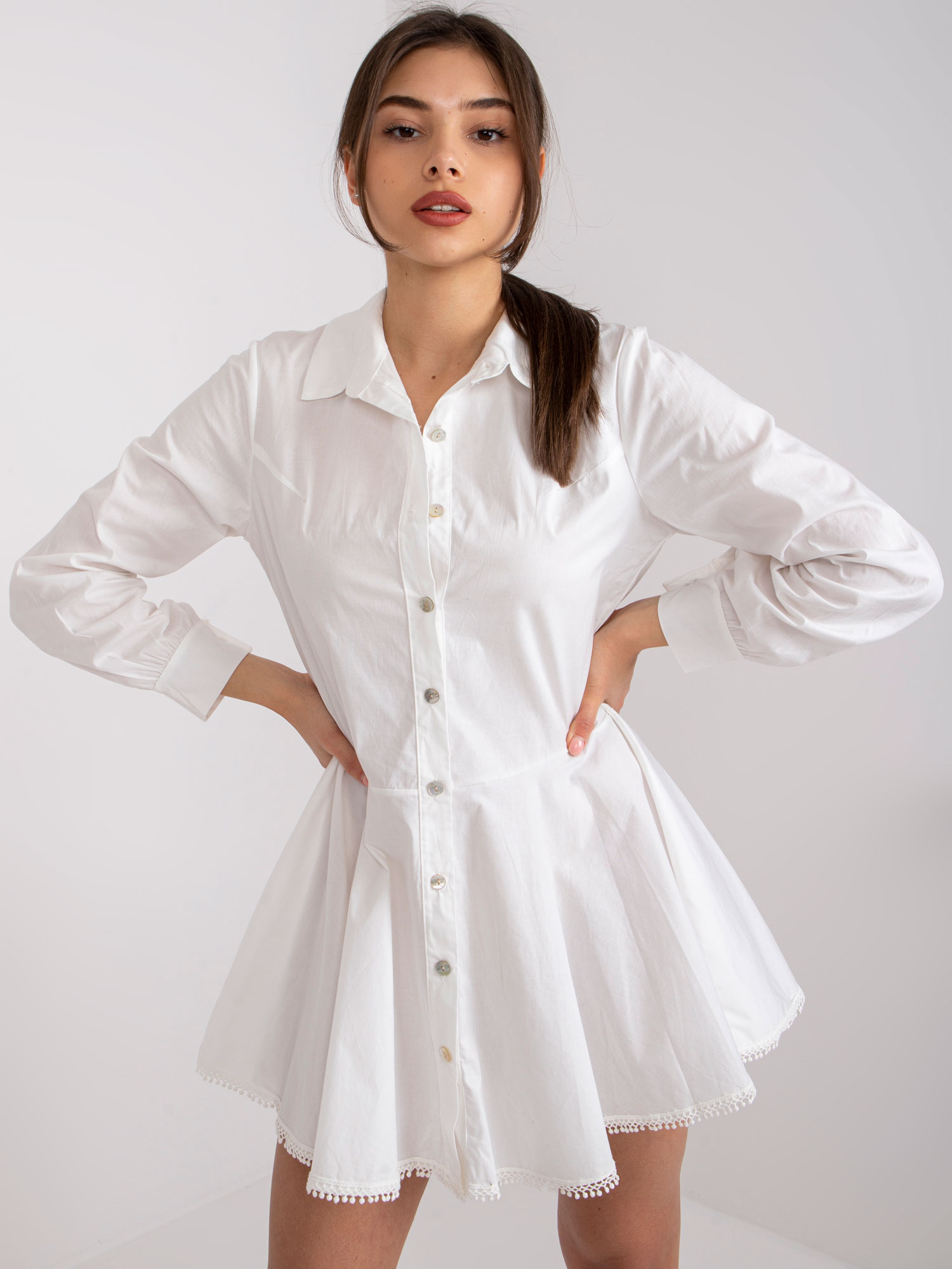 Modelka ma na sobie rozmiar one size. Wymiary modelki: wzrost 169 cm, biust 86 cm, talia 67 cm, biodra 88 cm.
