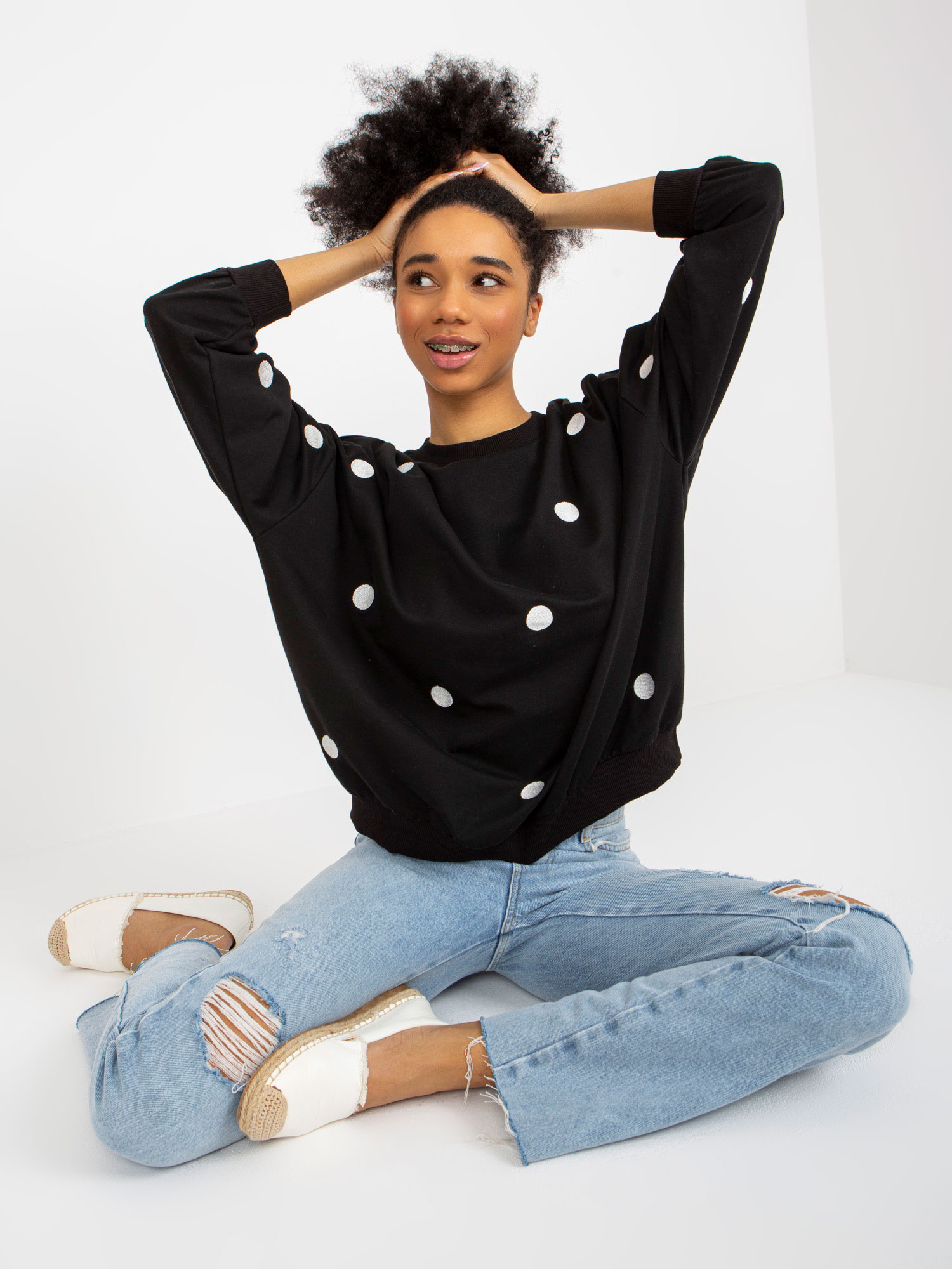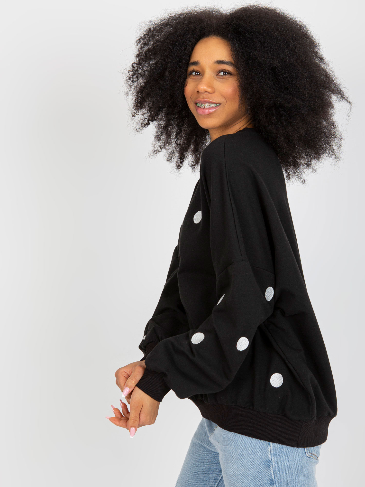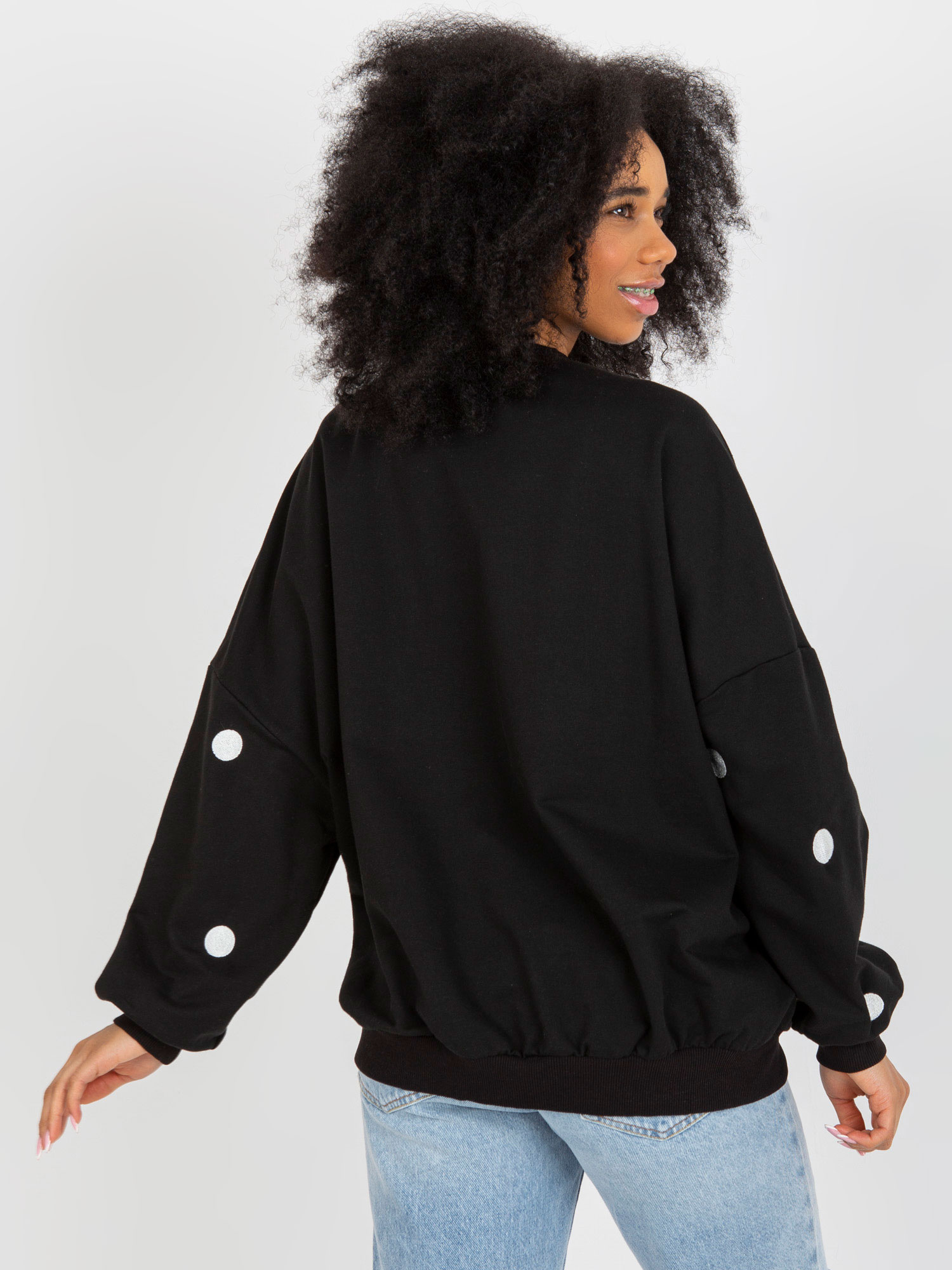 Czarna dresowa bluza bez kaptura o kroju oversize .