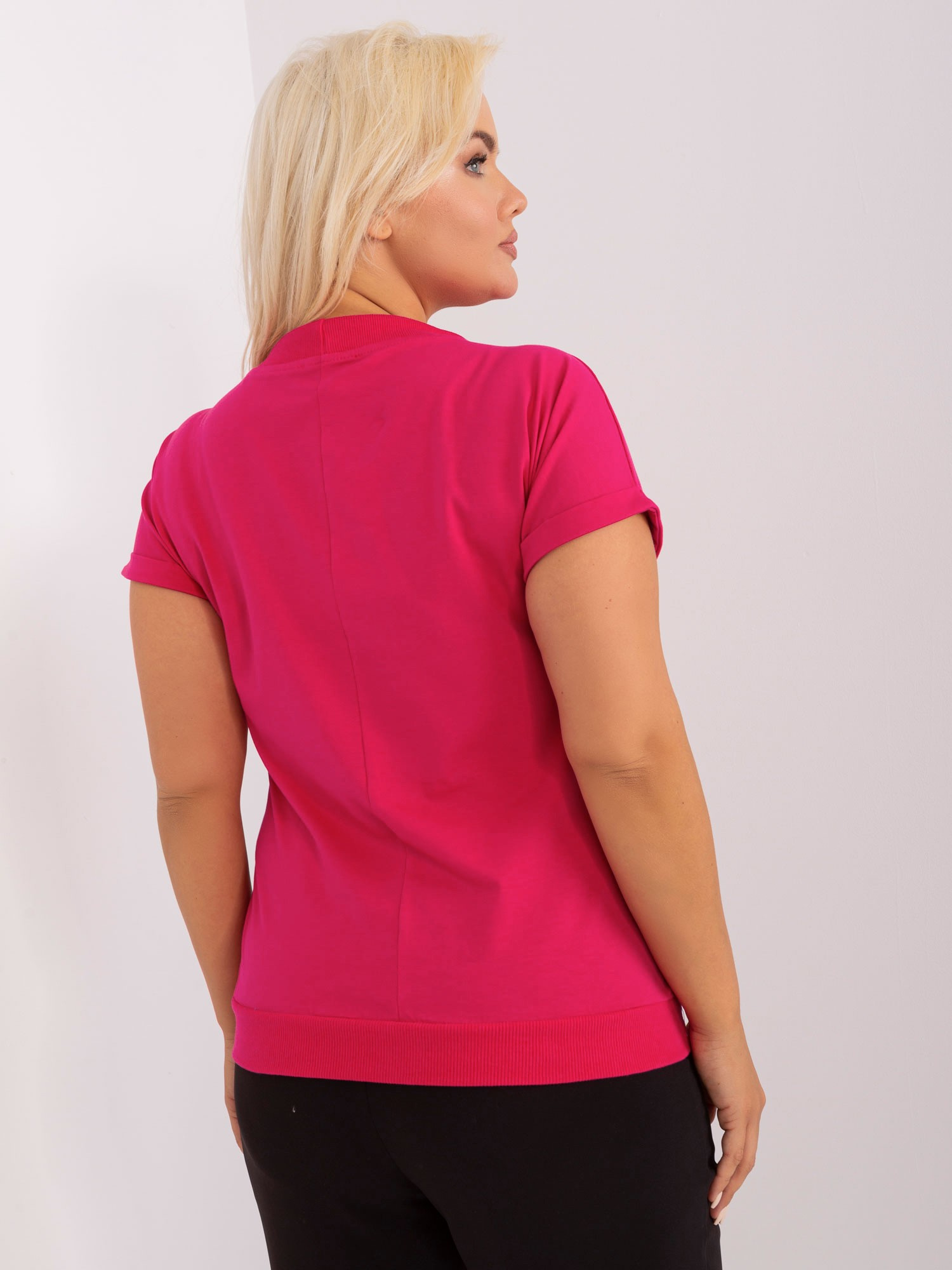 Wymiary bluzy w rozmiarze one size mierzone na płasko: szerokość pod pachami – 64 cm, długość całkowita – 67 cm, długość rękawa – 67 cm.