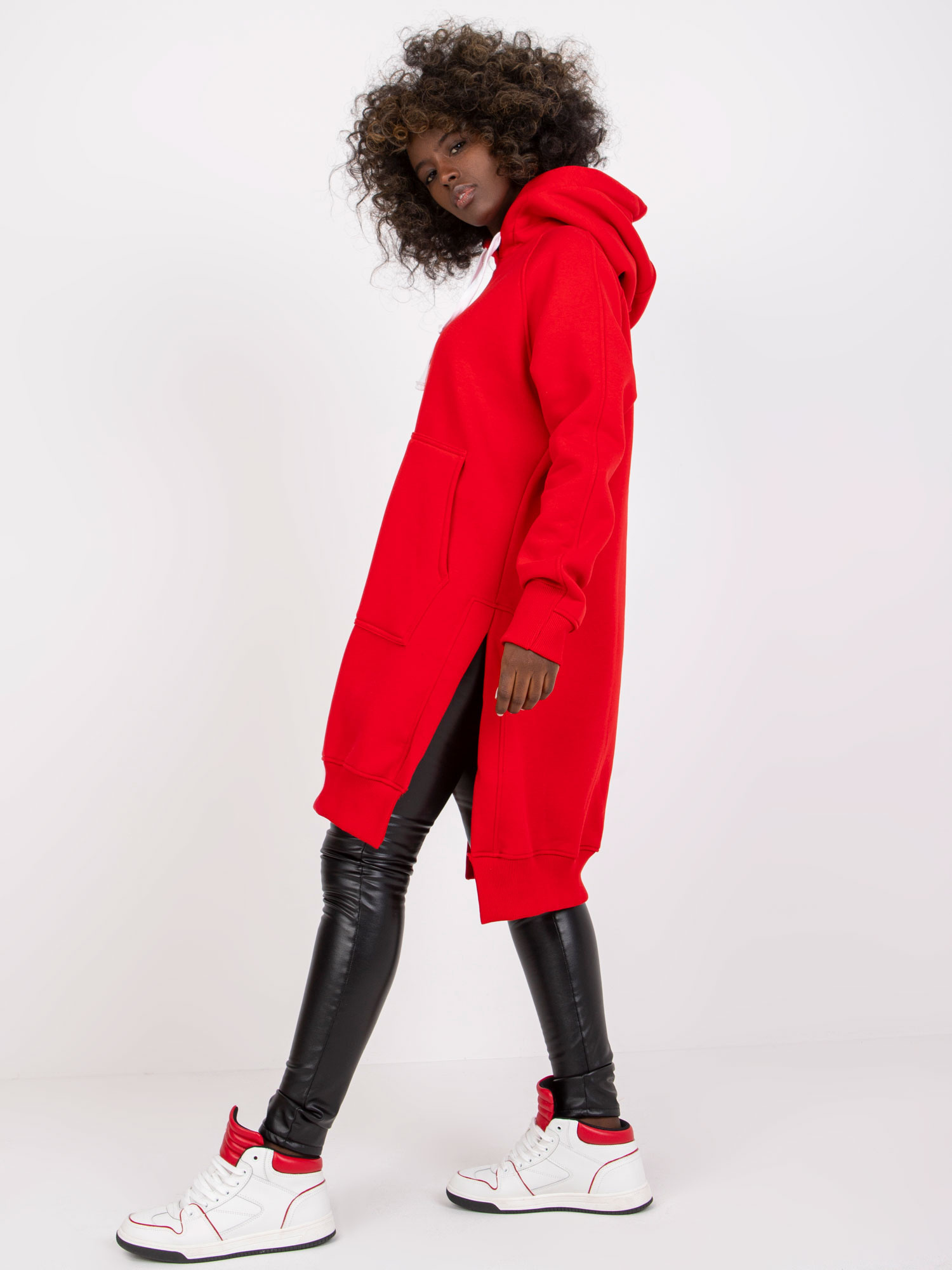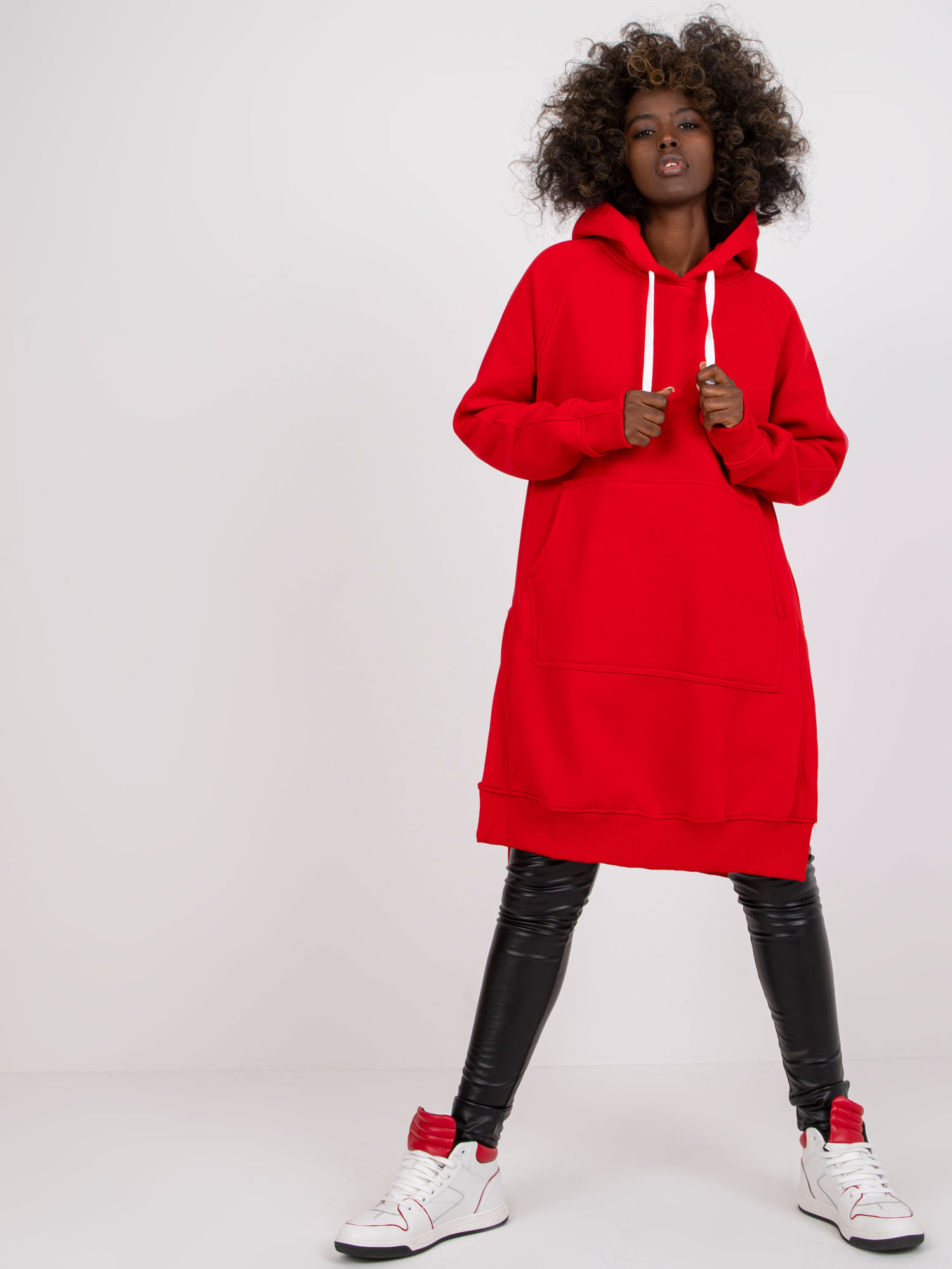 Wymiary bluzy w rozmiarze one size mierzone na płasko: szerokość pod pachami – 63 cm, długość całkowita (przód) – 86 cm, długość całkowita (tył) – 92 cm, długość rękawa – 61 cm.