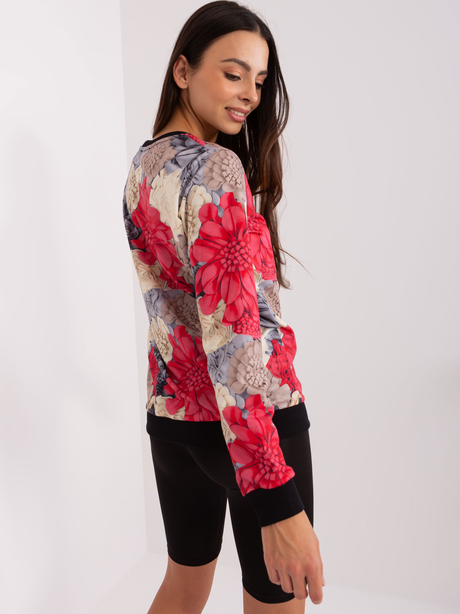 Czerwono-szara bluza z nadrukiem RUE PARIS .