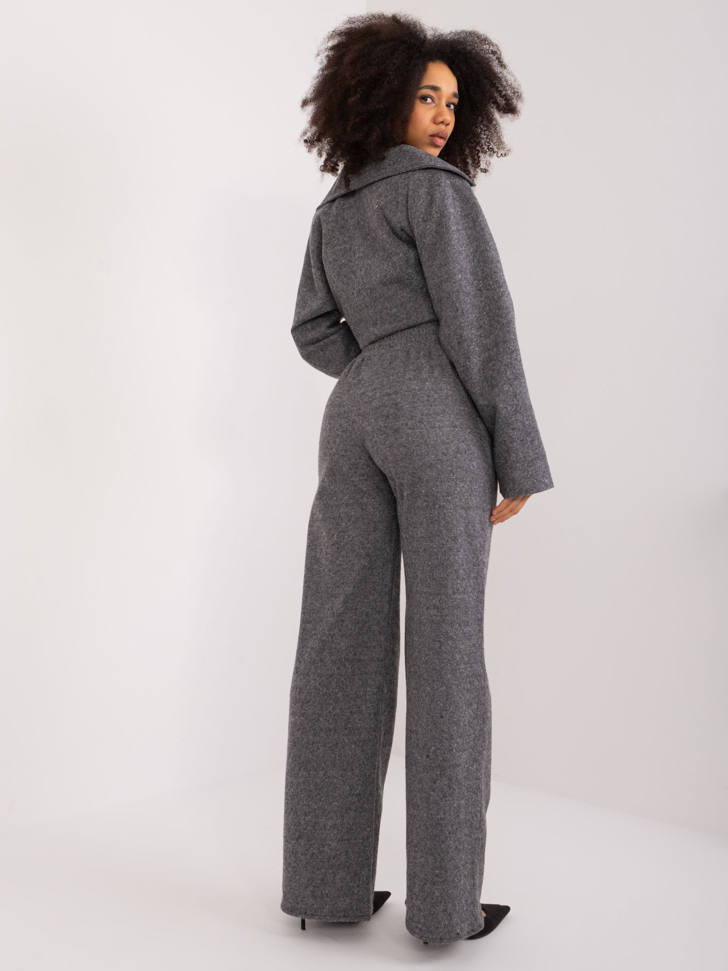 Modelka ma na sobie rozmiar one size. Wymiary modelki: wzrost 172 cm, biust 102 cm, talia 77 cm, biodra 118 cm.