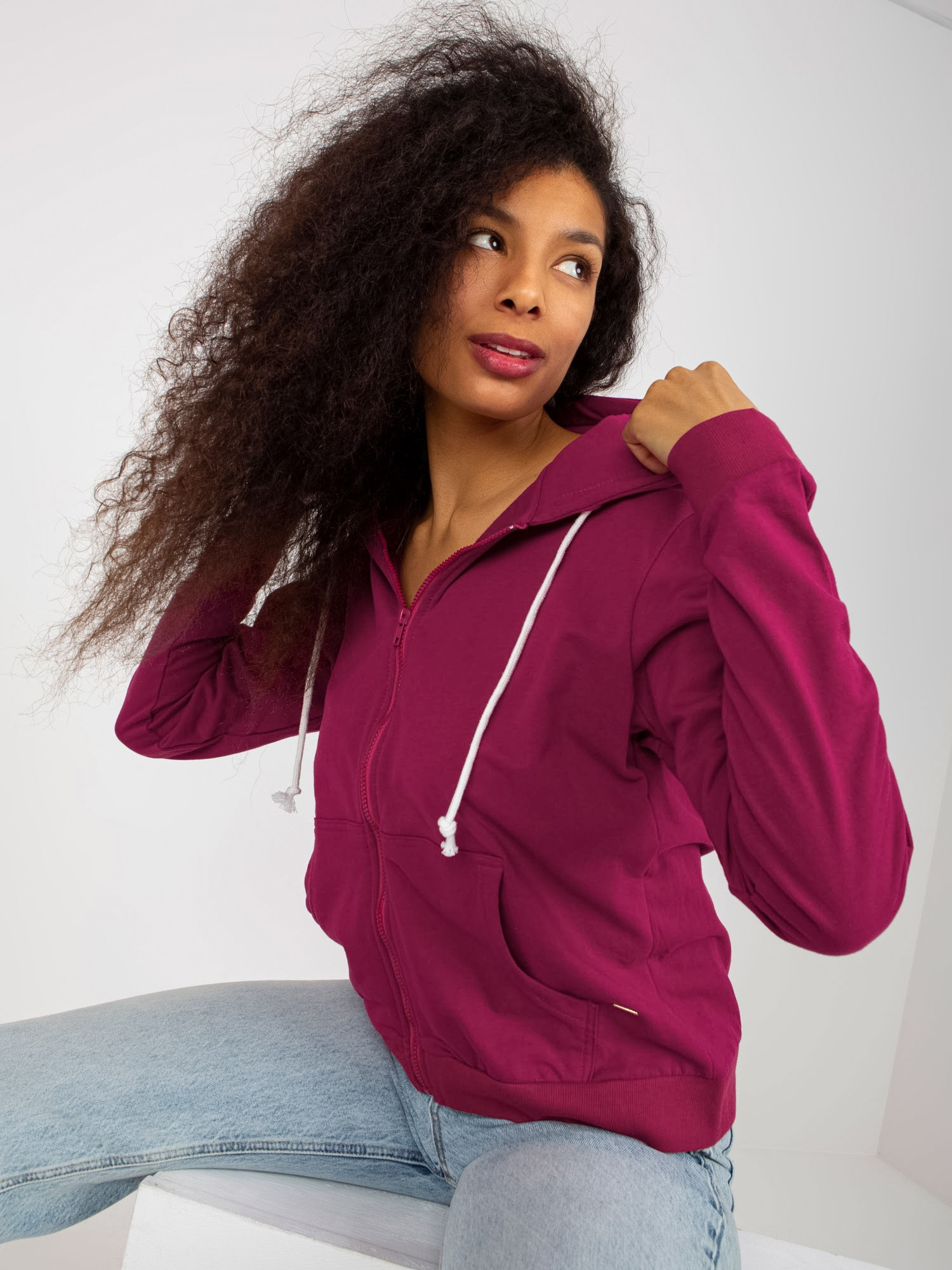 Wymiary bluzy w rozmiarze S mierzone na płasko: szerokość pod pachami – 55 cm, długość całkowita – 62 cm, długość rękawa – 62 cm.