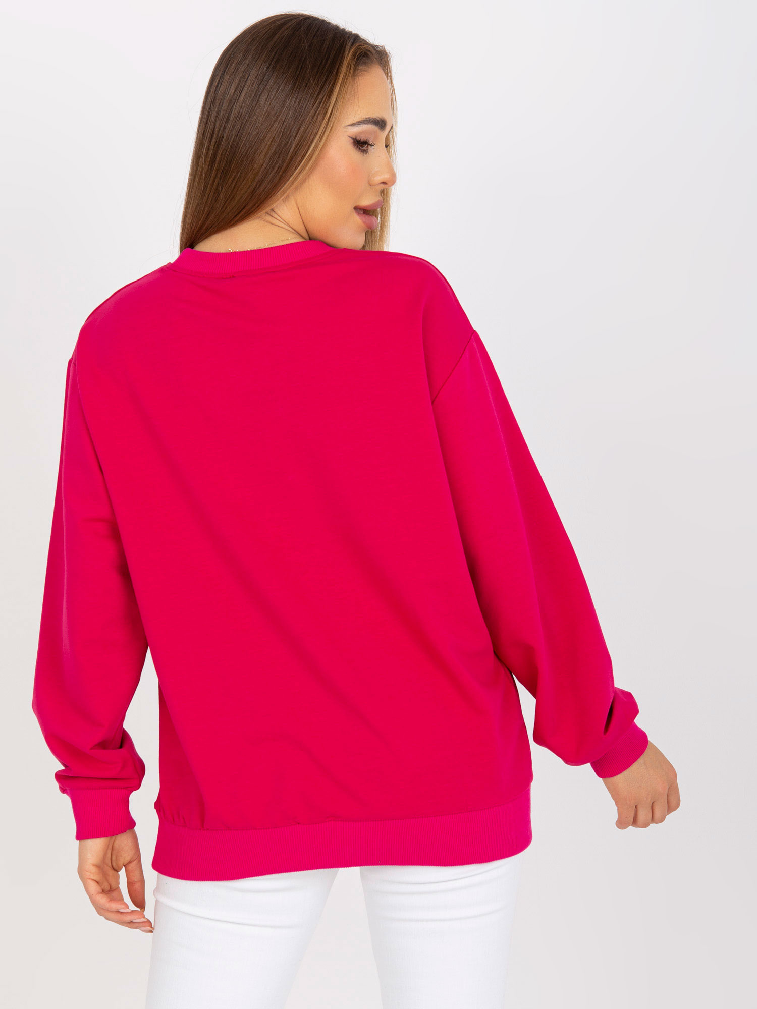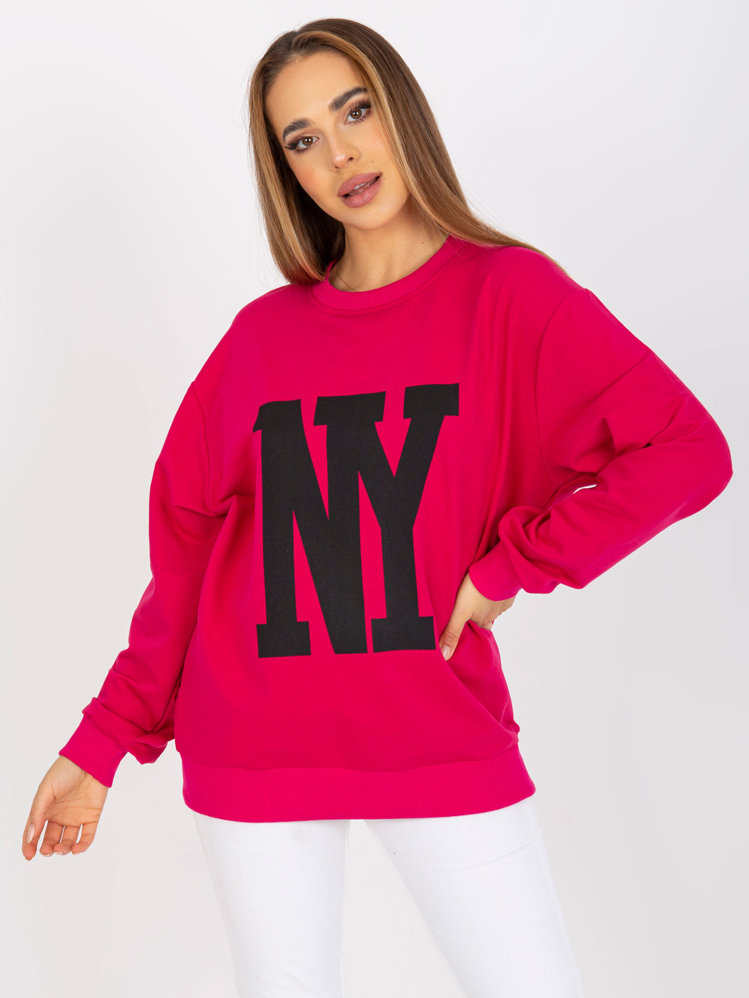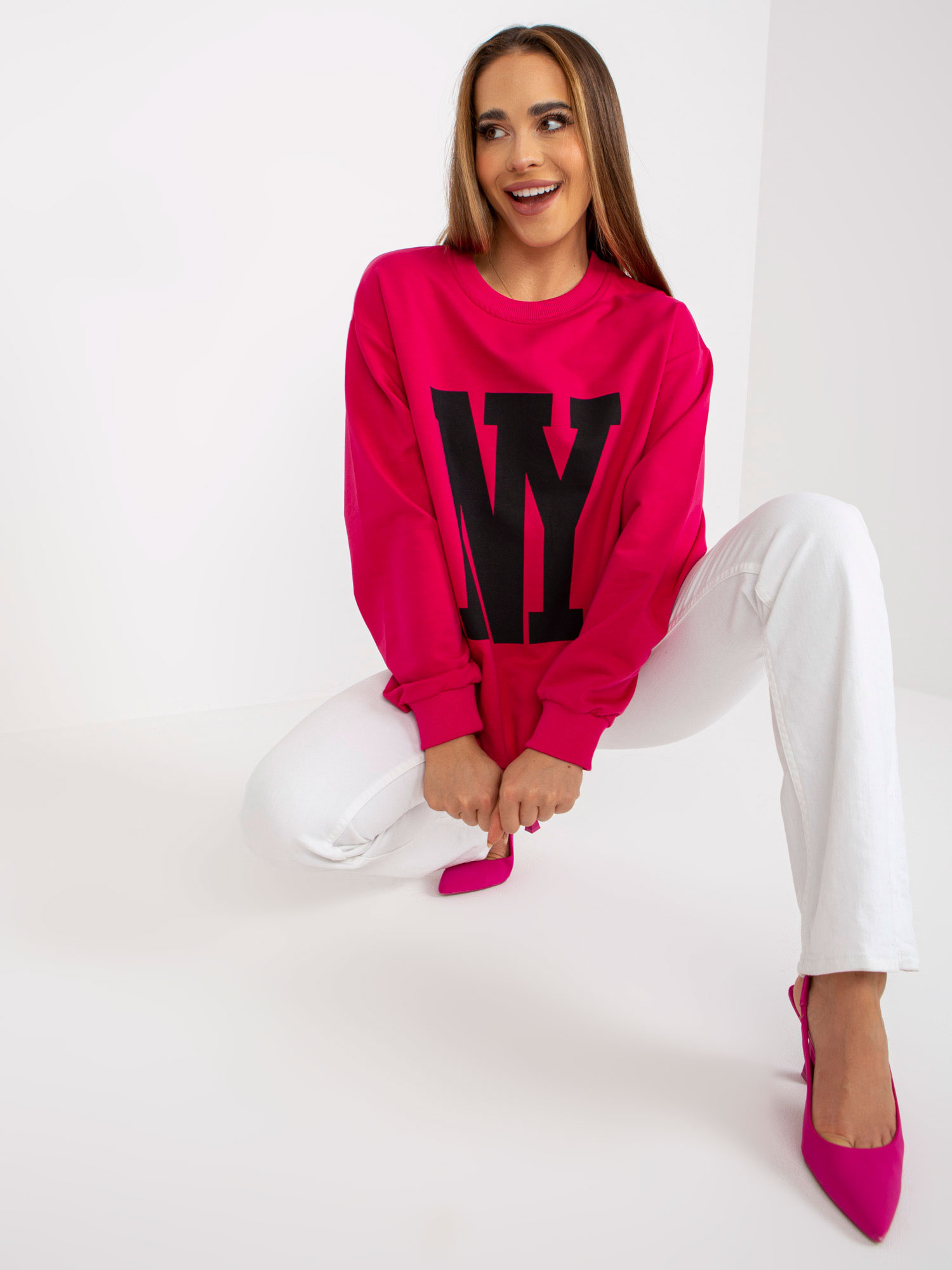 Fuksjowa dresowa bluza z nadrukiem i okrągłym dekoltem .