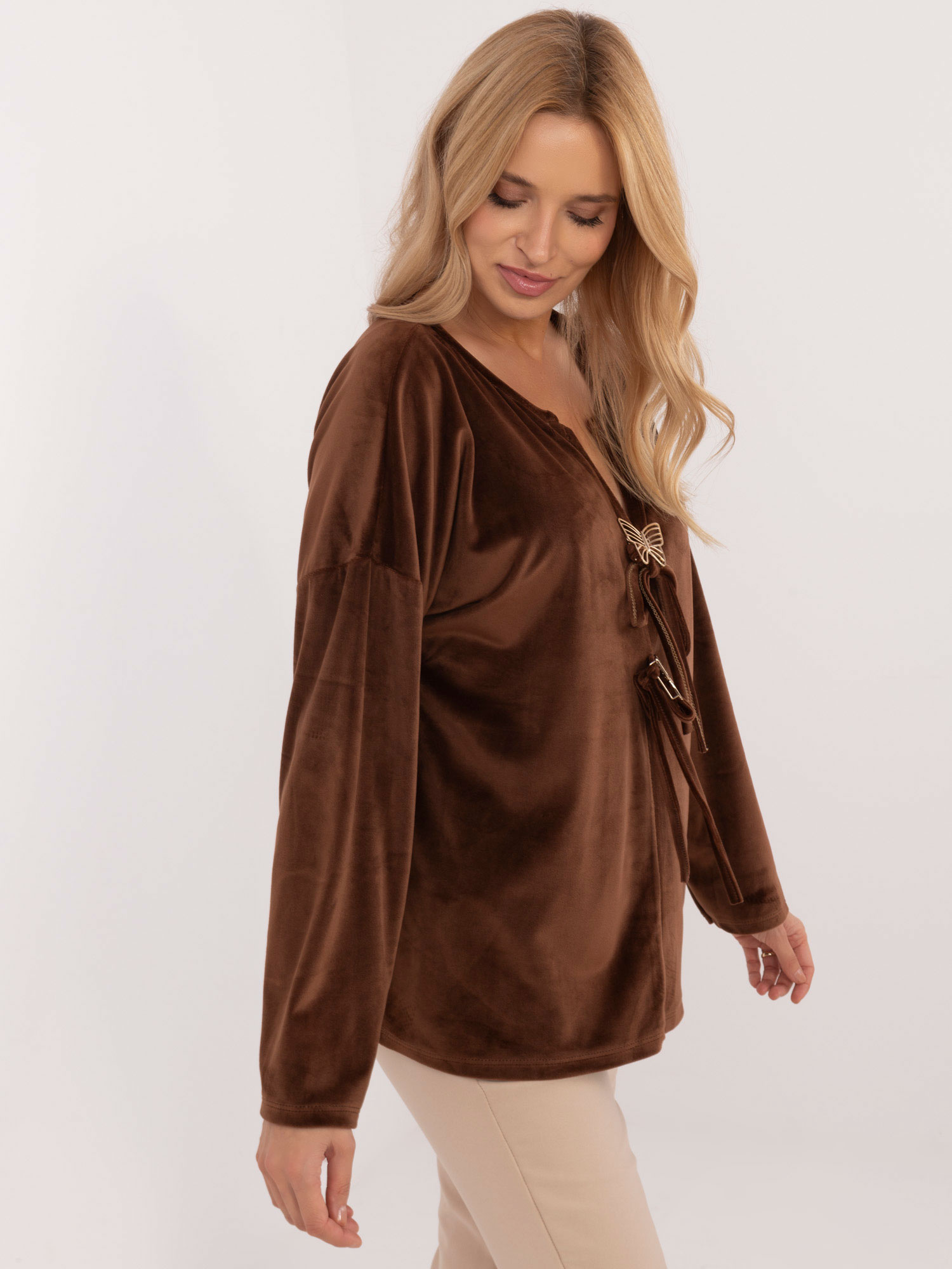 Wymiary bluzy w rozmiarze S/M mierzone na płasko: szerokość pod pachami – 51 cm, długość rękawa – 57 cm, długość całkowita – 57 cm.