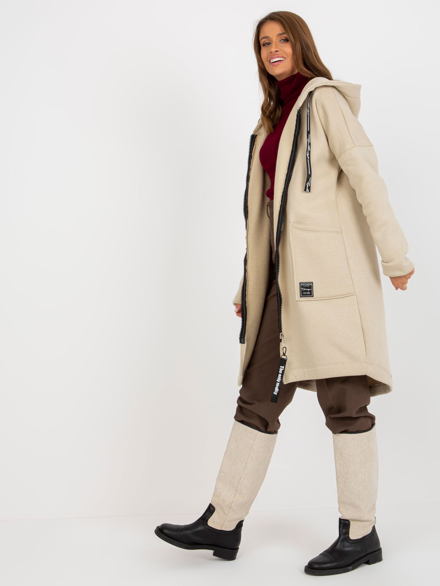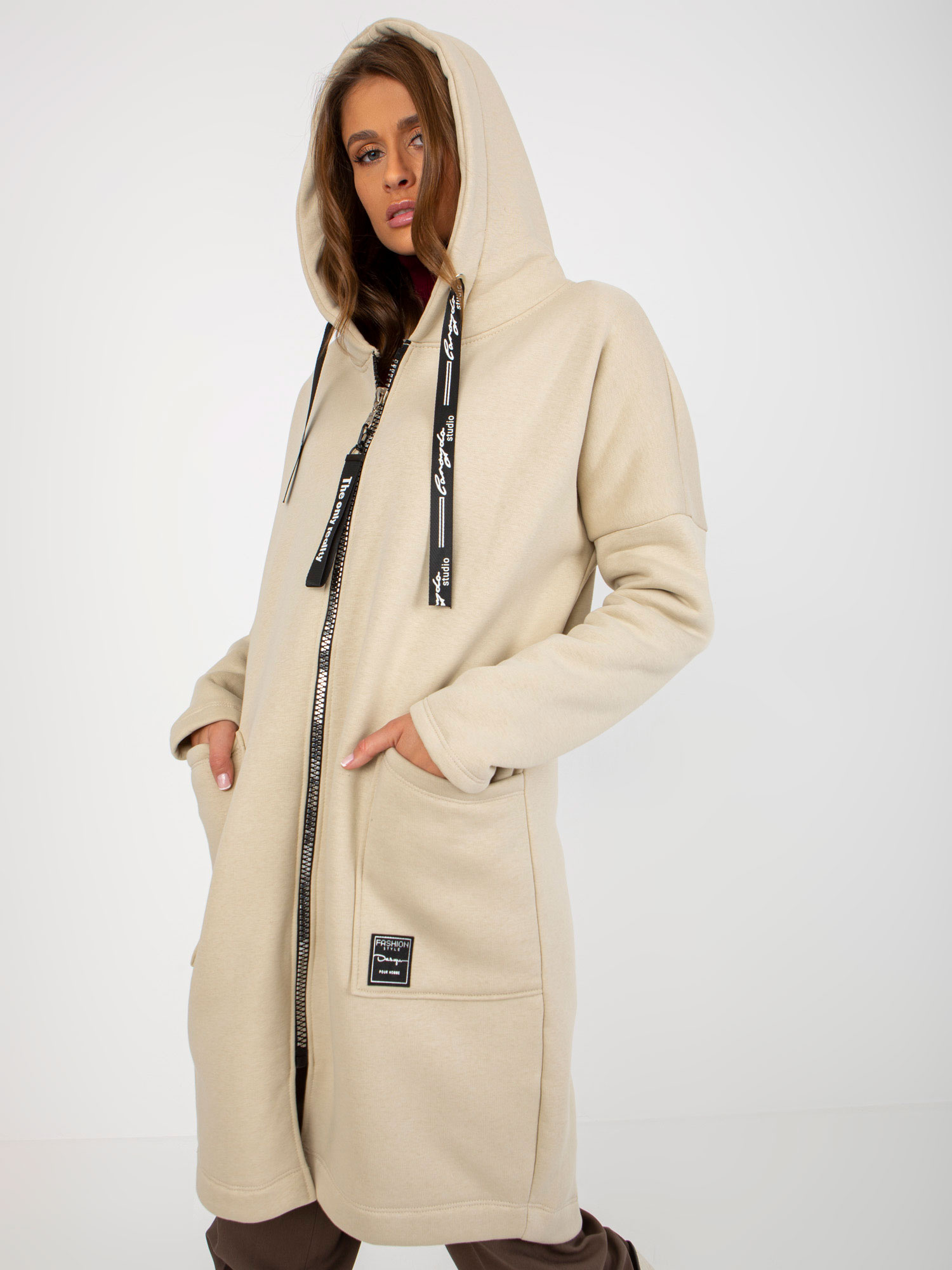 Jasnobeżowa długa dresowa bluza rozpinana oversize .