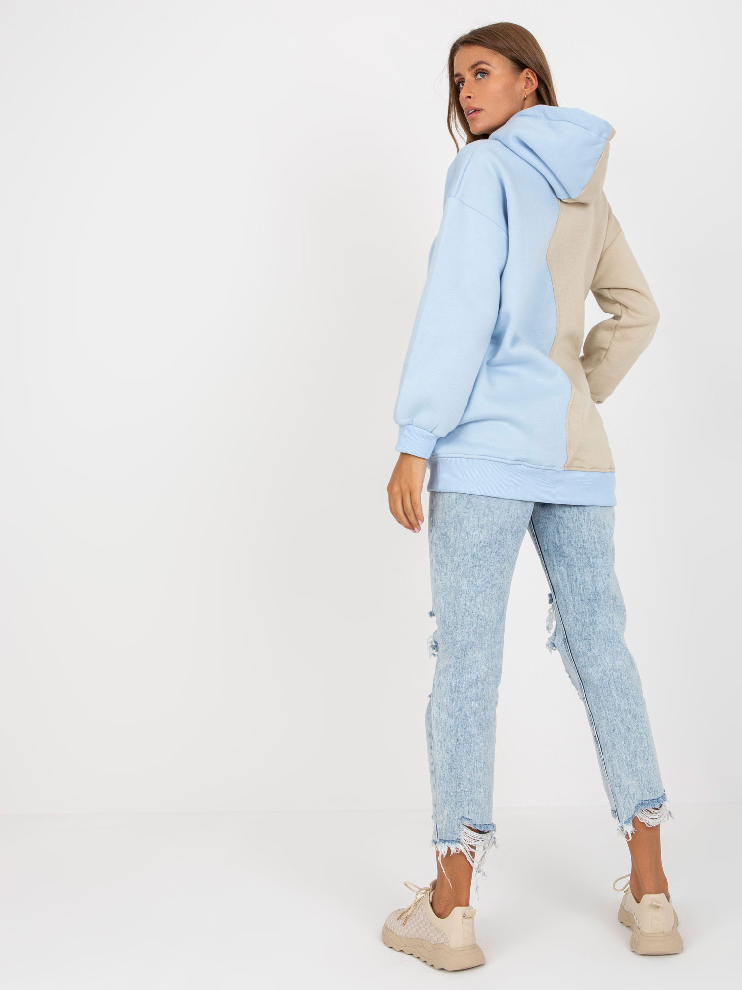 Beżowo-niebieska damska bluza basic z kapturem RUE PARIS .