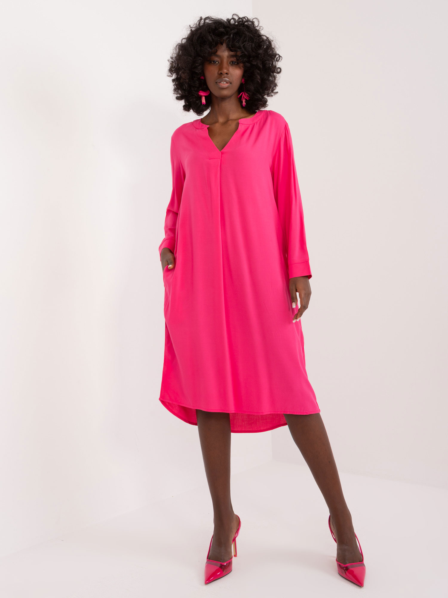 - Modelka: Modelka ma na sobie rozmiar one size. Wymiary modelki: wzrost 170 cm, biust 93 cm, talia 66 cm, biodra 93 cm