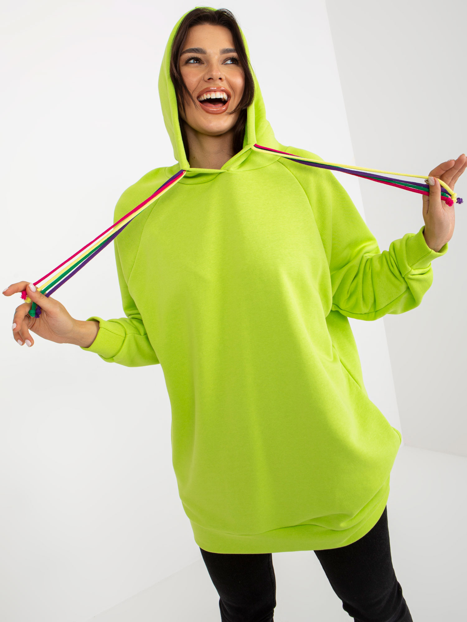 Wymiary bluzy w rozmiarze one size mierzone na płasko: szerokość pod pachami – 64 cm, długość rękawa – 60 cm, długość całkowita – 84 cm.