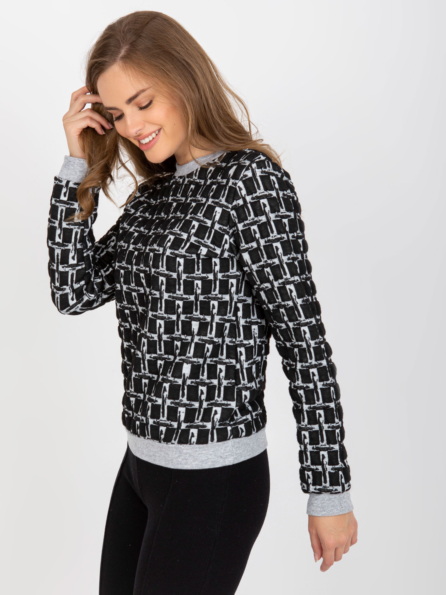 Wymiary bluzy w rozmiarze 36 mierzone na płasko: szerokość pod pachami – 47 cm, długość całkowita – 59 cm, długość rękawa – 60 cm.