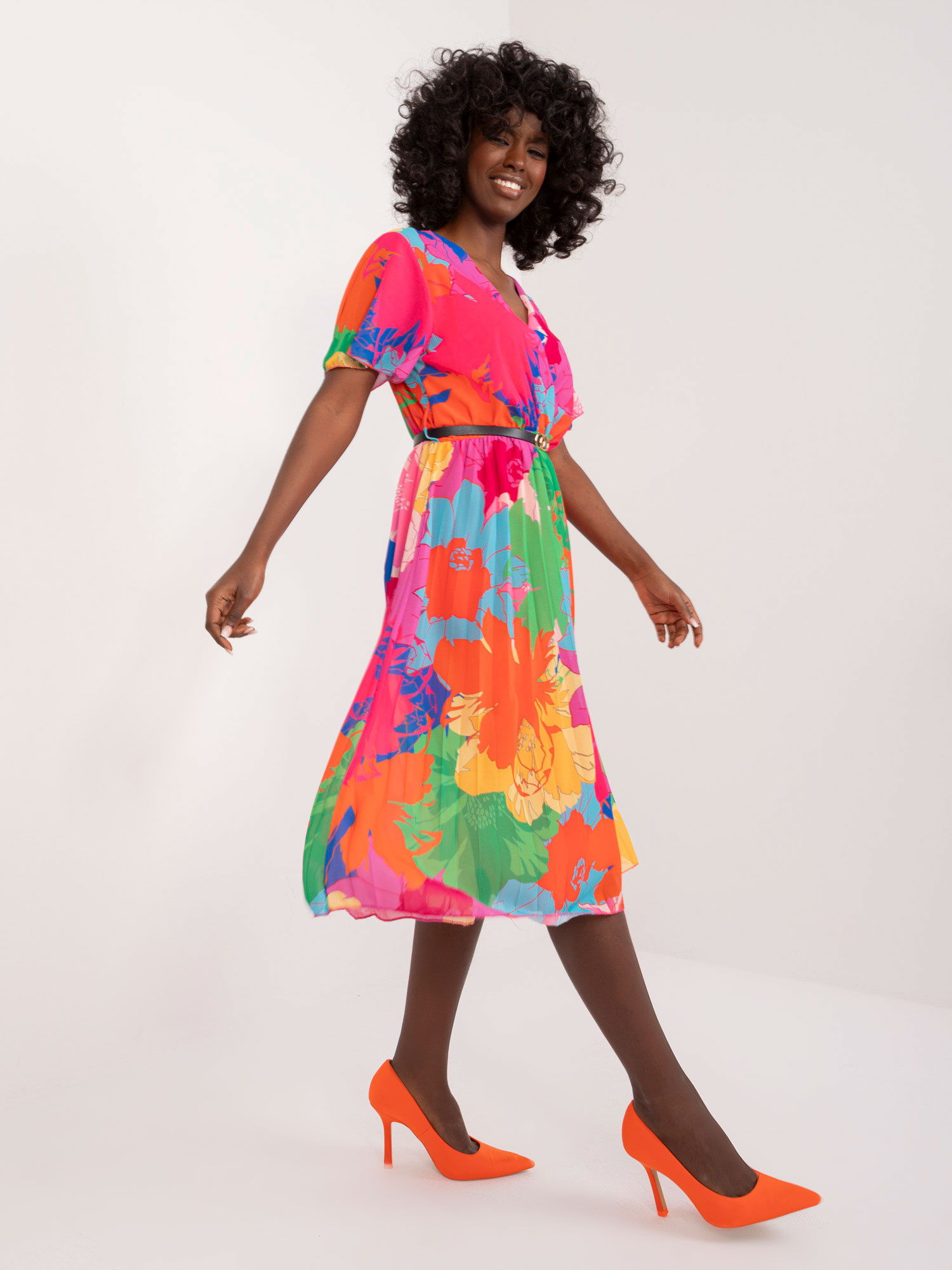 Modelka ma na sobie rozmiar S/M. Wymiary modelki: wzrost 162 cm, biust 80 cm, talia 63 cm, biodra 80 cm.