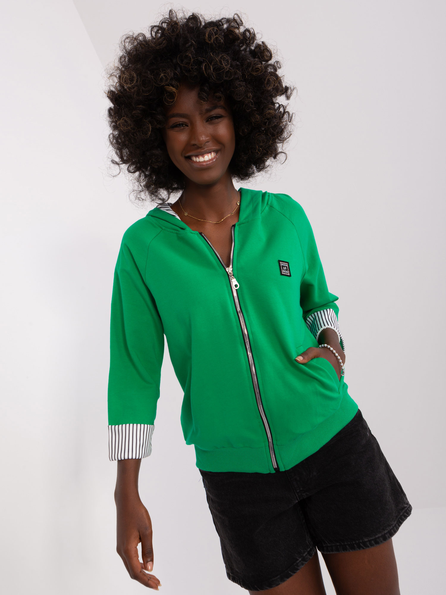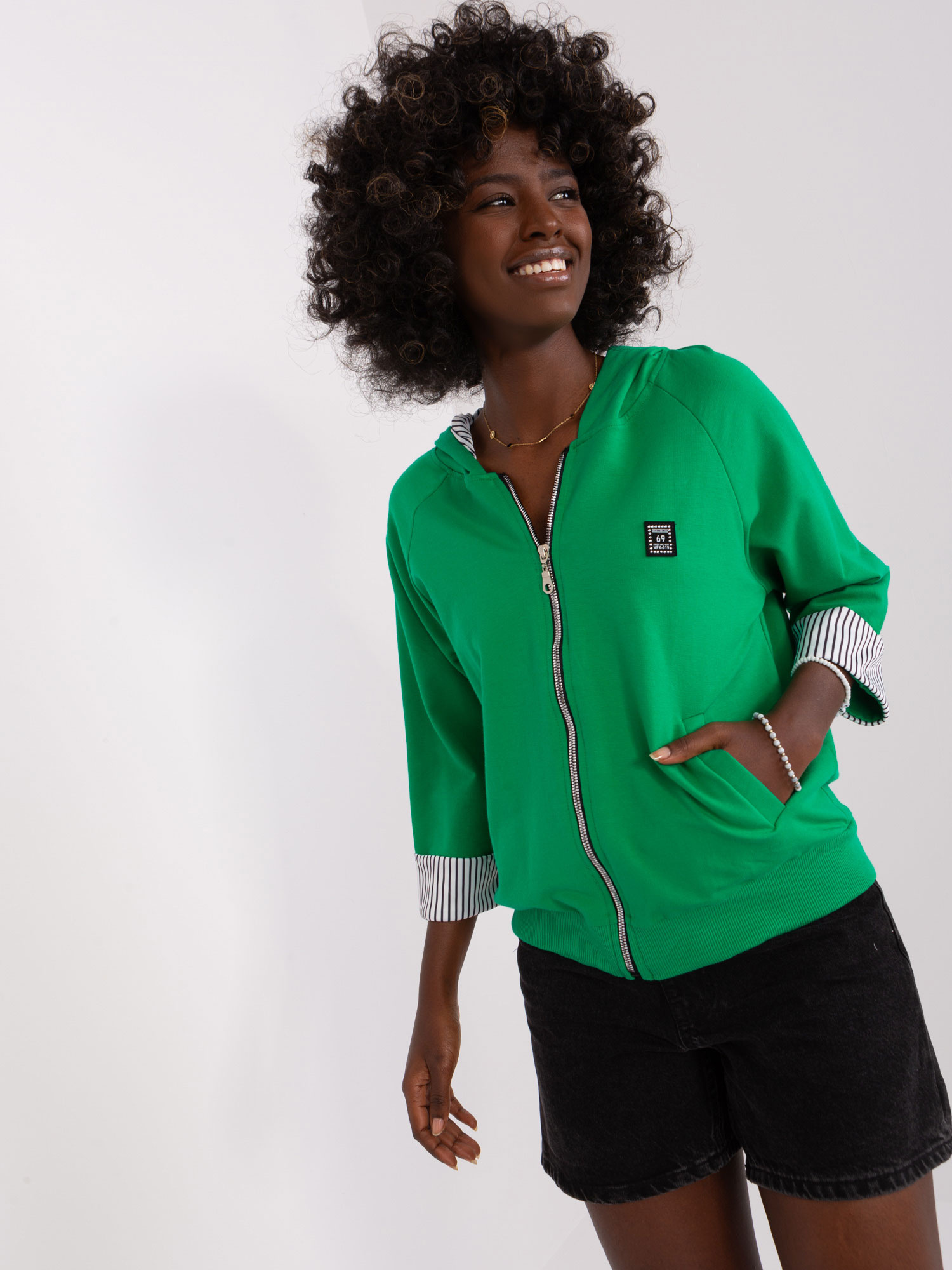 Zielona damska bluza rozpinana z rękawem 3/4 .