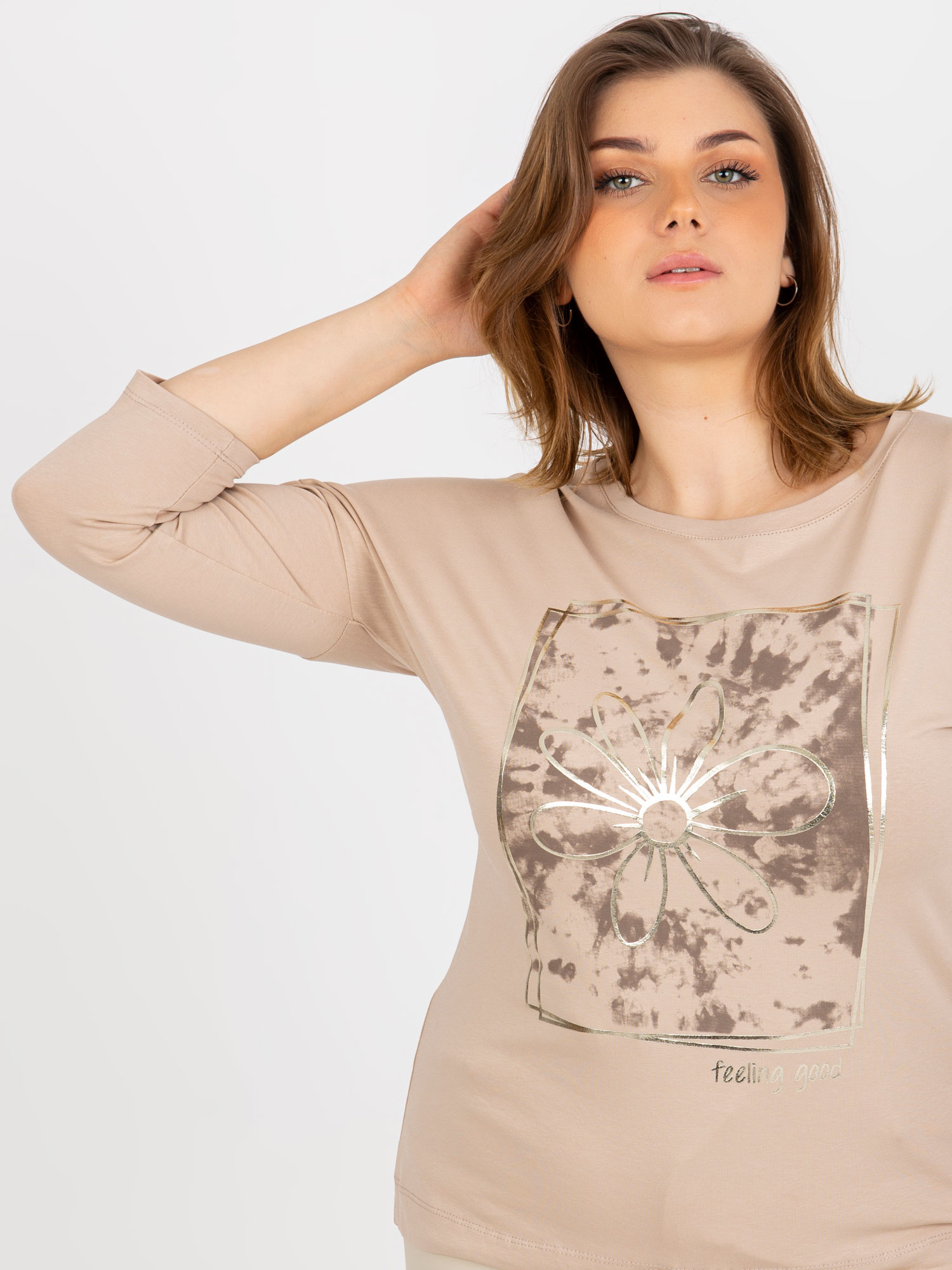 Wymiary bluzki w rozmiarze one size mierzone na płasko: szerokość pod pachami – 60 cm, długość rękawa – 44 cm, długość całkowita – 62 cm.