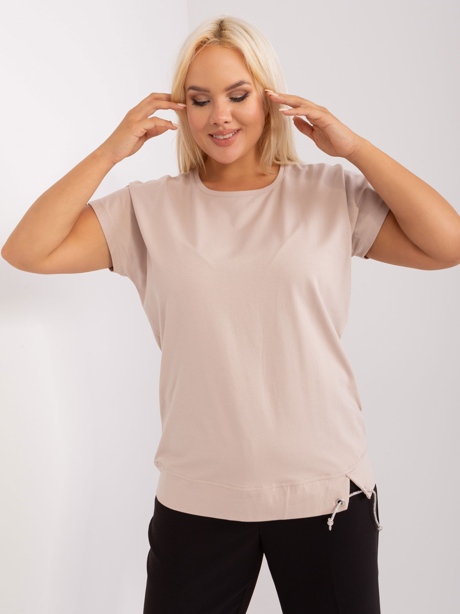 Beżowa bluzka plus size z krótkim rękawem .