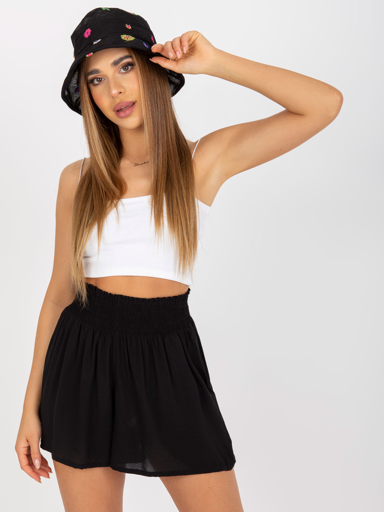 • Modelka: Modelka ma na sobie rozmiar S. Wymiary modelki: wzrost 173 cm, biust 85 cm, talia 62 cm, biodra 95 cm