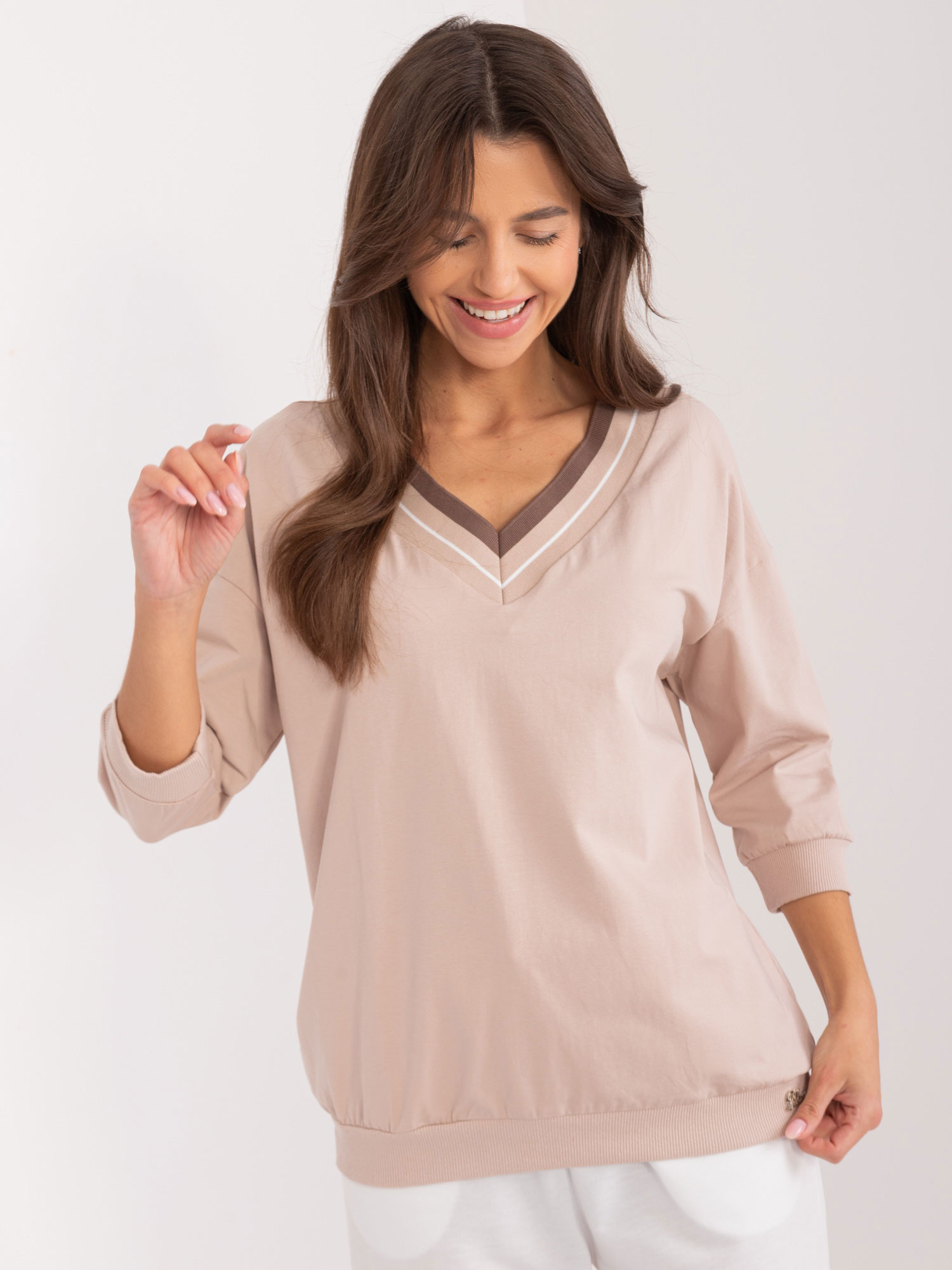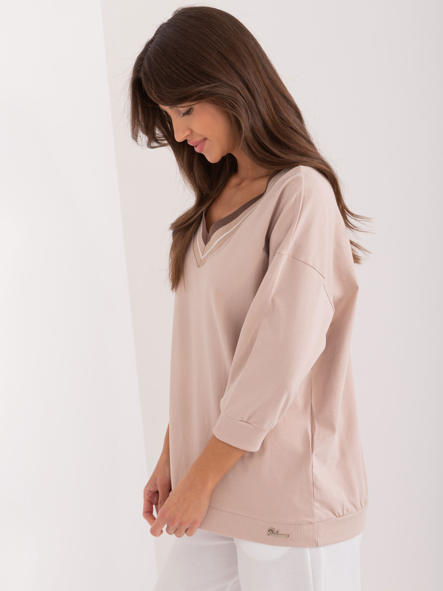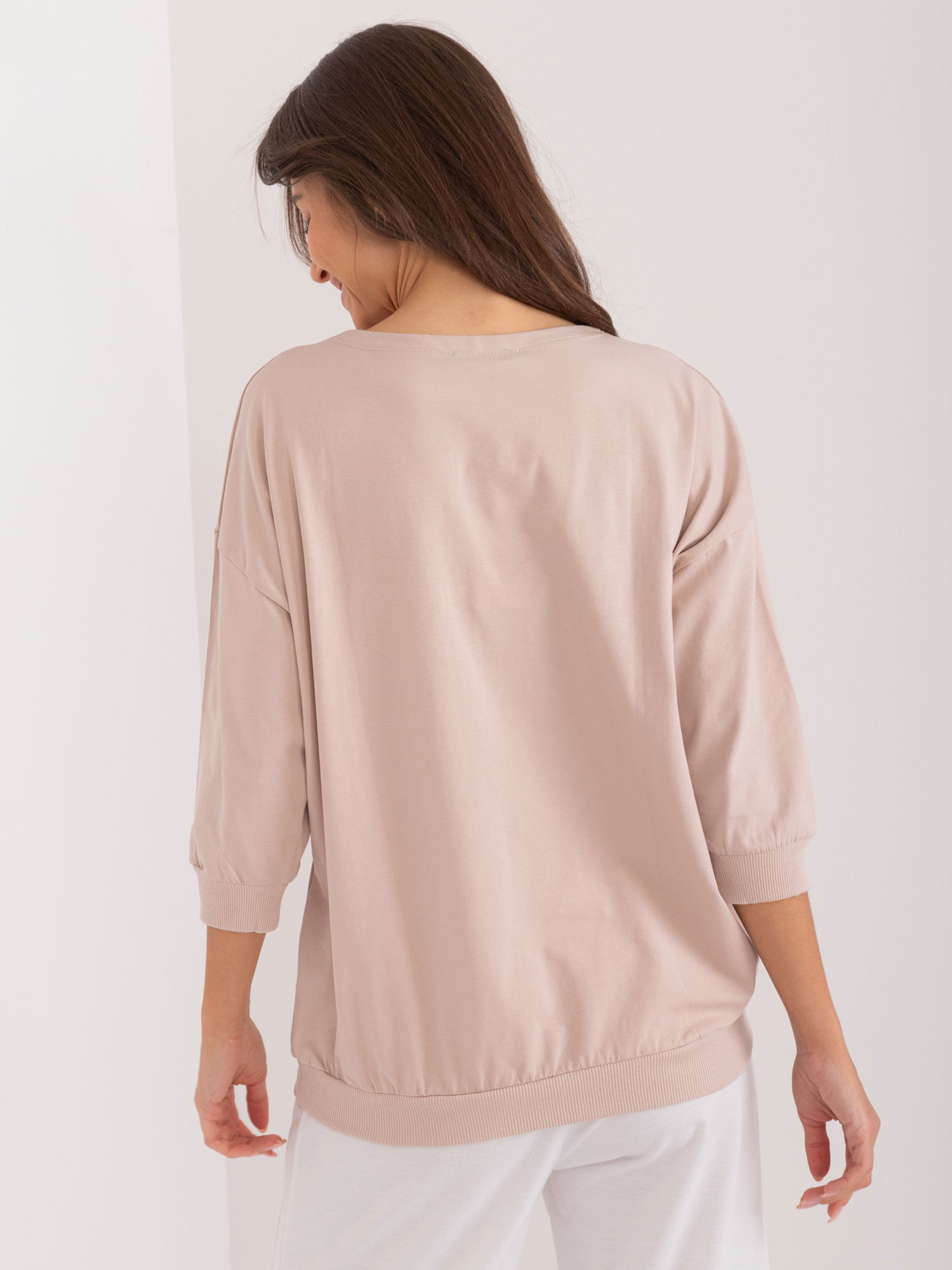 Wymiary bluzki w rozmiarze one size mierzone na płasko: szerokość pod pachami – 58 cm, długość rękawa – 39 cm, długość całkowita – 58 cm.