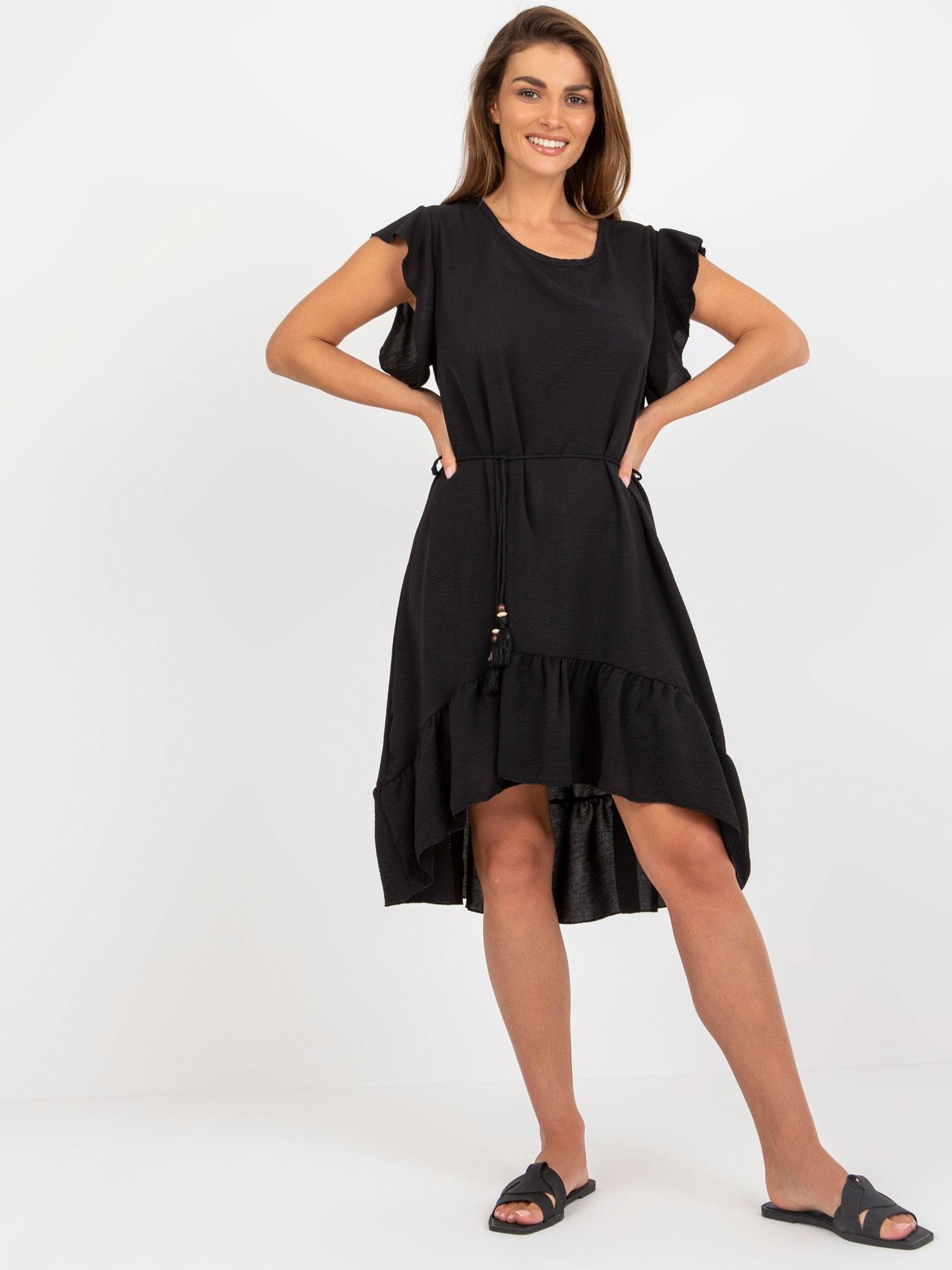 Modelka ma na sobie rozmiar one size. Wymiary modelki: wzrost 169 cm, biust 84 cm, talia 63 cm, biodra 87 cm.