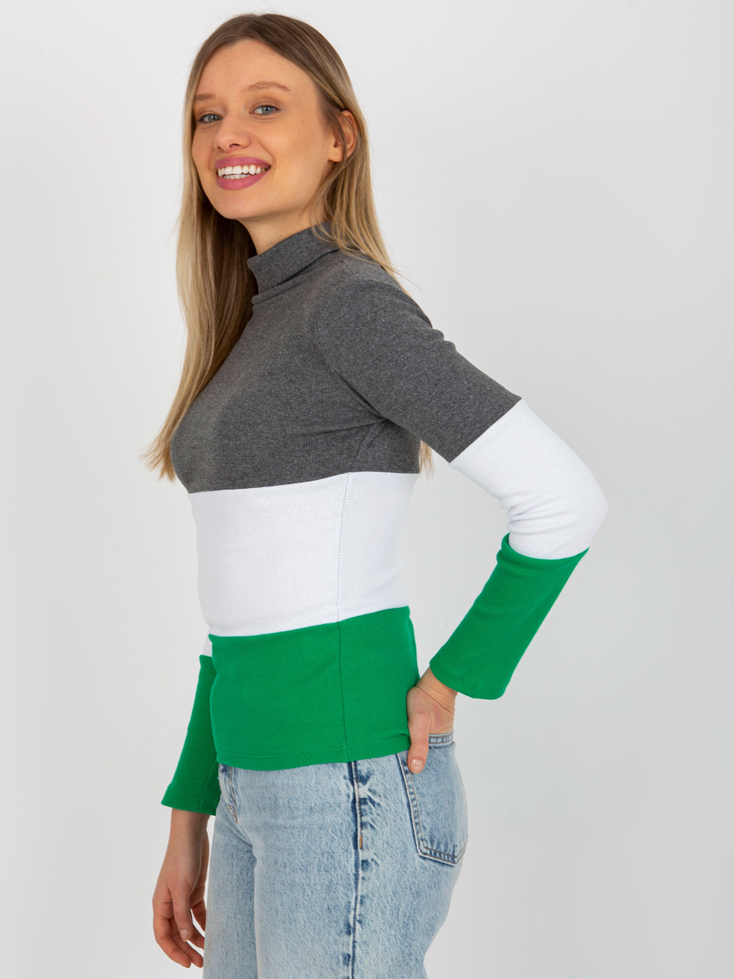 Wymiary bluzki w rozmiarze one size mierzone na płasko: szerokość pod pachami – 45 cm, długość całkowita – 59 cm, długość rękawa – 61 cm.