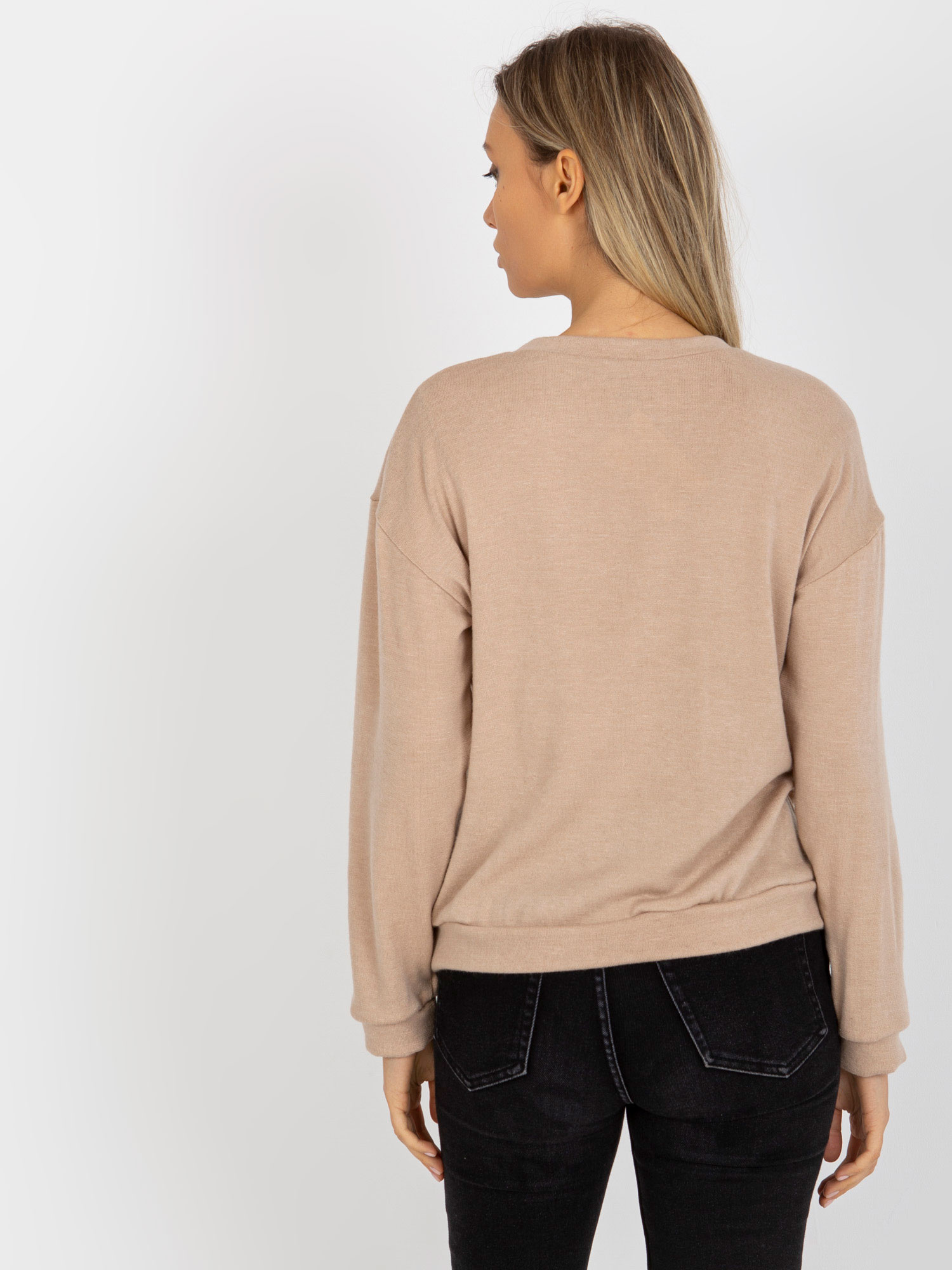 Beżowy damski sweter klasyczny z cekinową aplikacją .