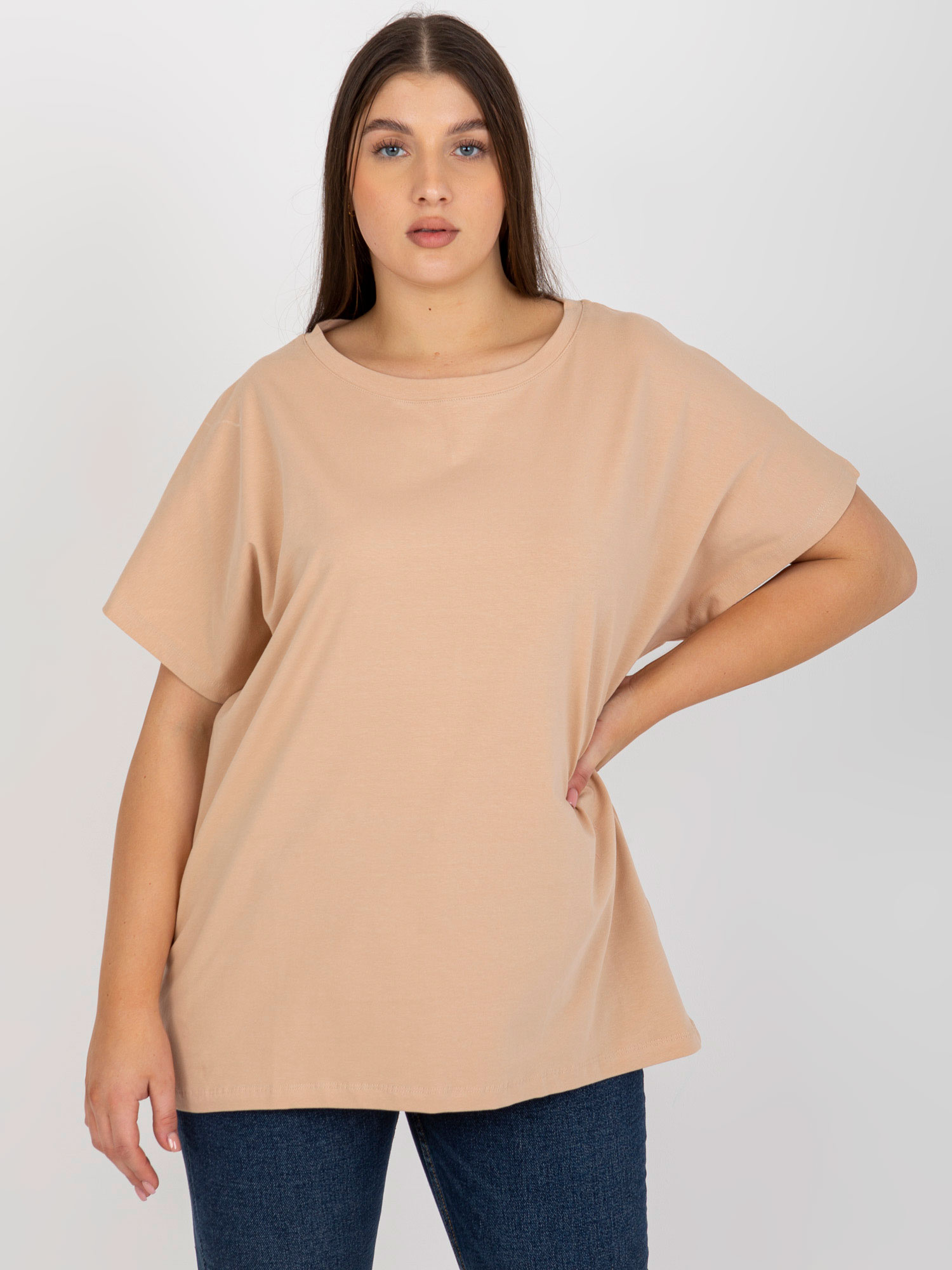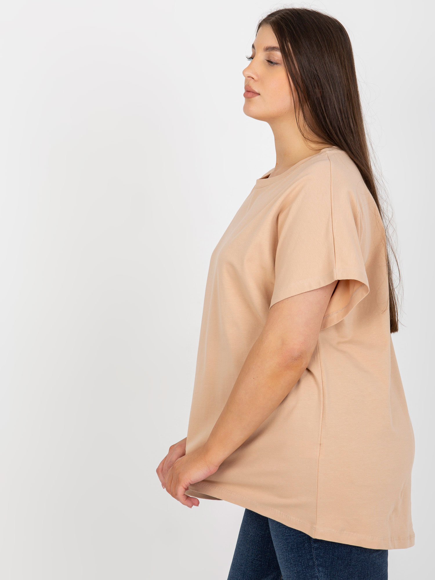 Beżowy t-shirt damski plus size basic z okrągłym dekoltem .