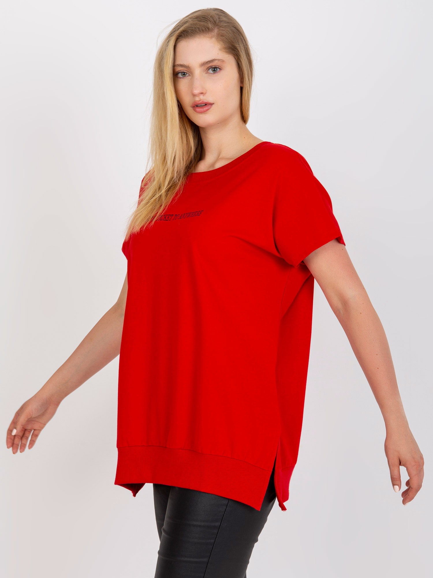 Wymiary bluzki w rozmiarze M/L mierzone na płasko: szerokość pod pachami – 60 cm, długość rękawa – 46 cm, długość całkowita – 70 cm.