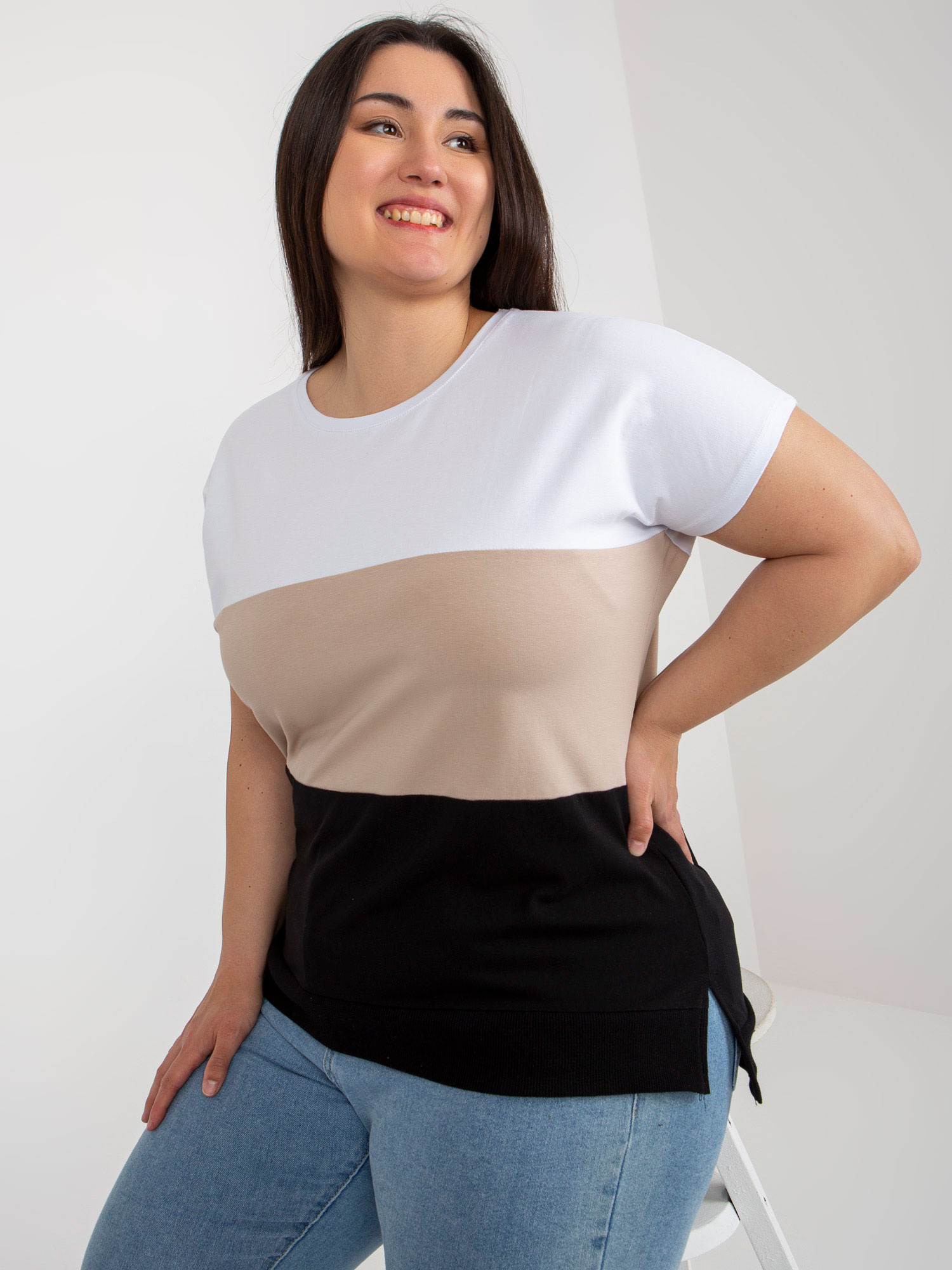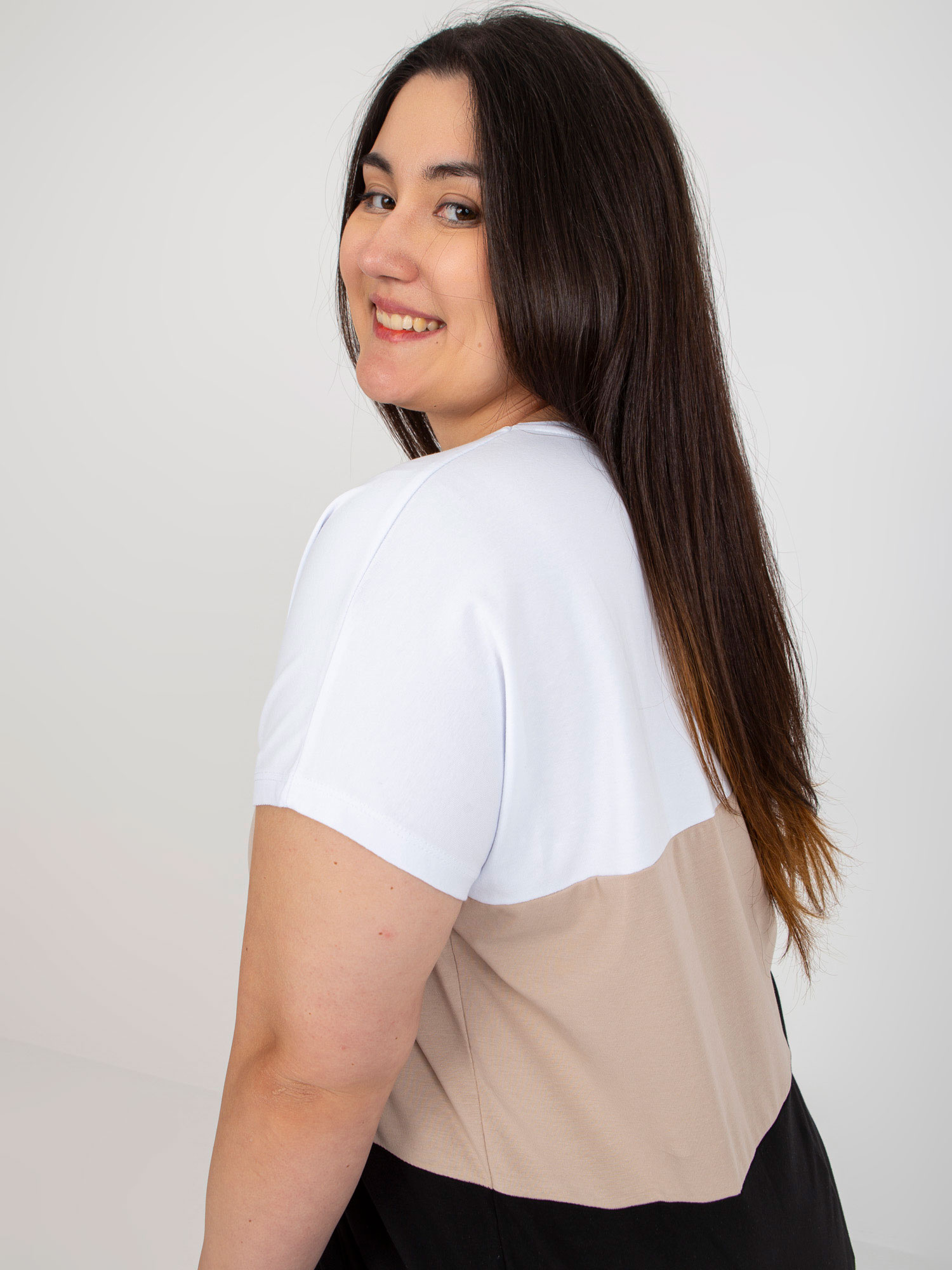 Biało-beżowa bluzka plus size z krótkim rękawem .
