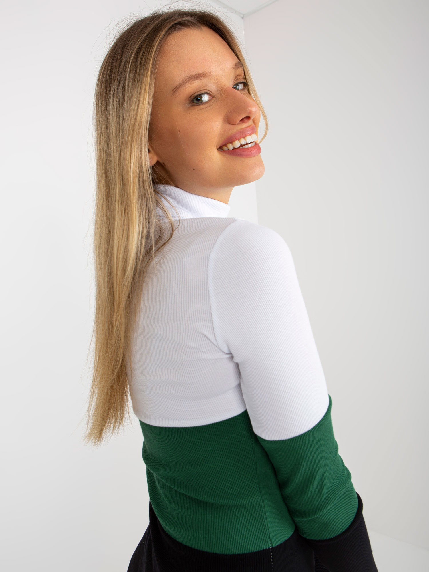 Wymiary bluzki w rozmiarze one size mierzone na płasko: szerokość pod pachami – 37 cm, długość rękawa – 56 cm, długość całkowita – 63 cm.