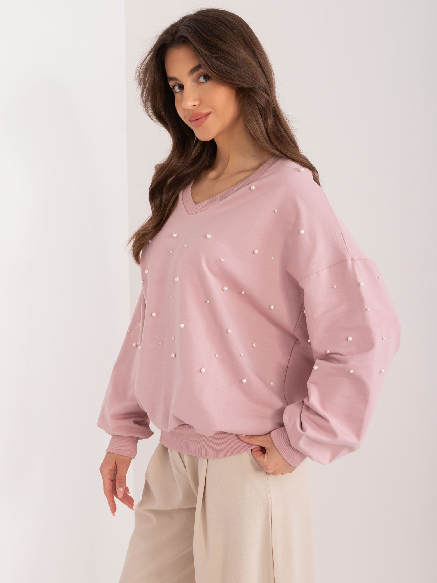Wymiary bluzki w rozmiarze one size mierzone na płasko: szerokość pod pachami – 62 cm, długość całkowita – 66 cm, długość rękawa – 60 cm