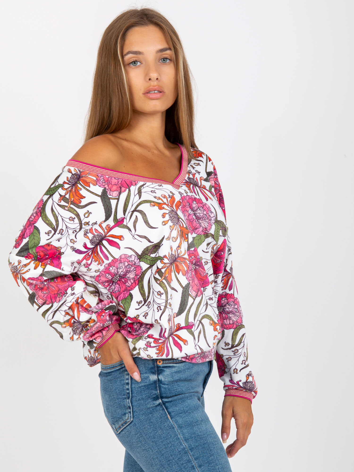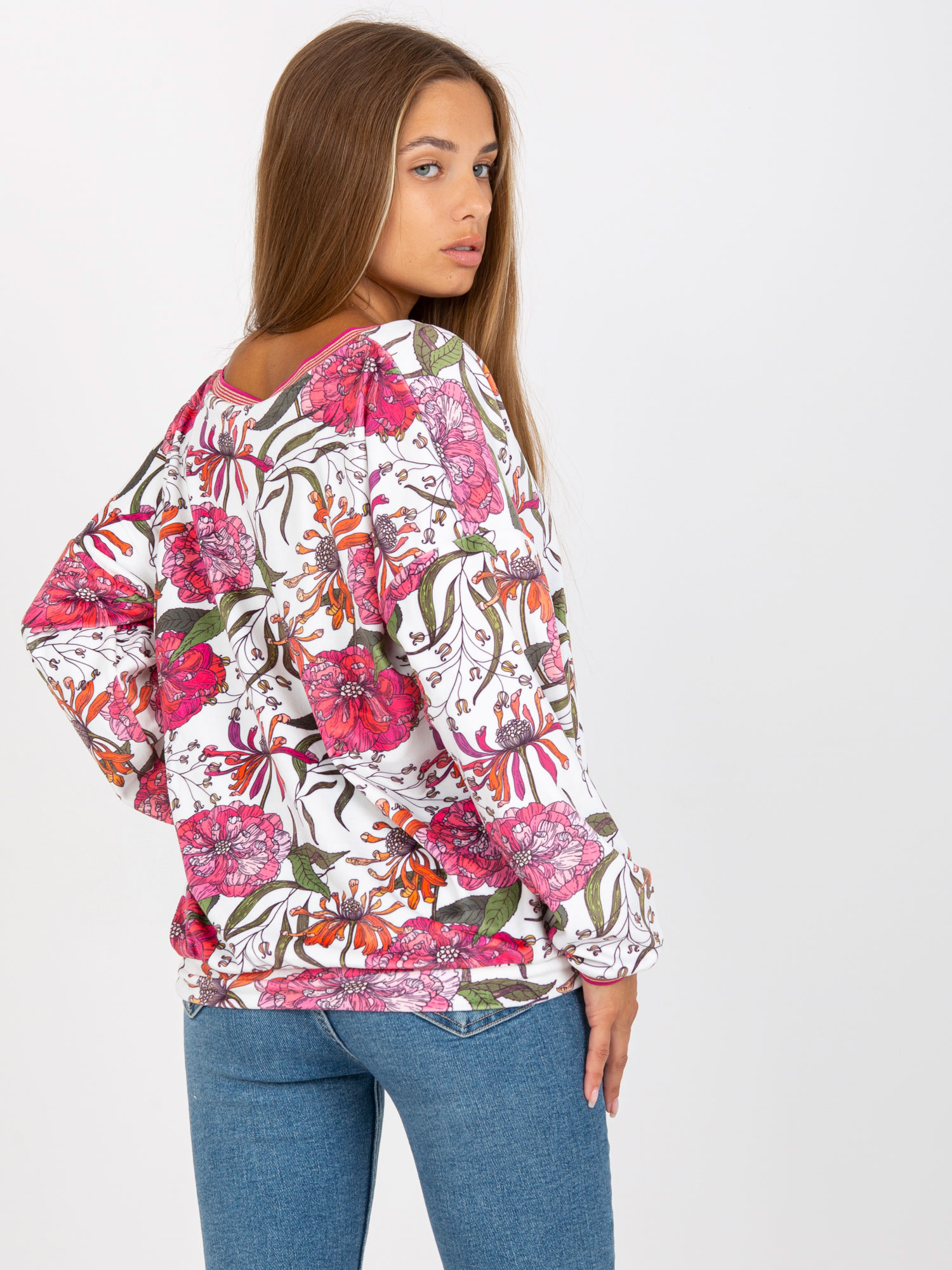 Biała welurowa bluzka z nadrukiem i długim rękawem RUE PARIS .