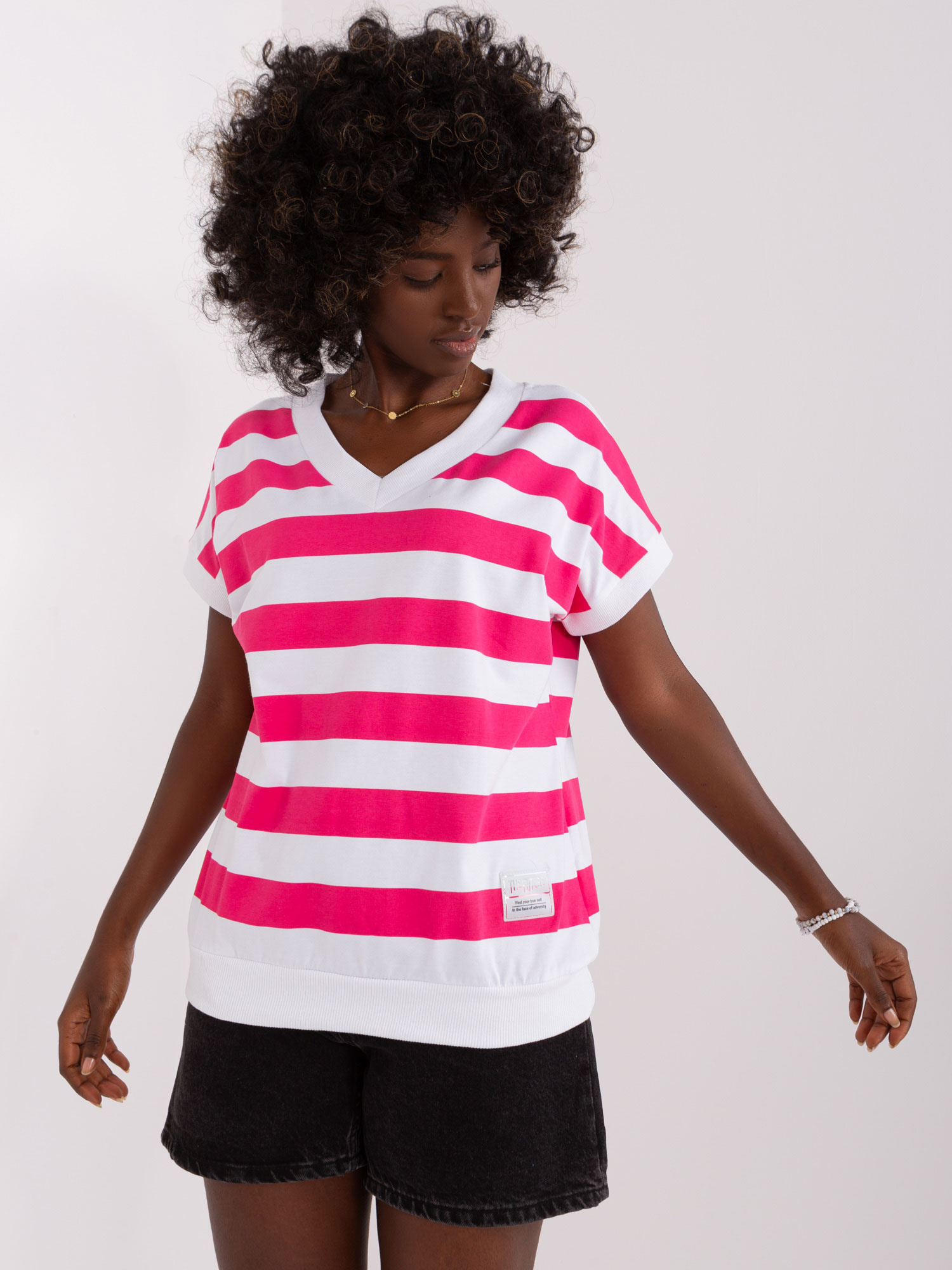 Wymiary bluzki w rozmiarze S/M mierzone na płasko: szerokość pod pachami – 54 cm, długość całkowita – 59 cm.